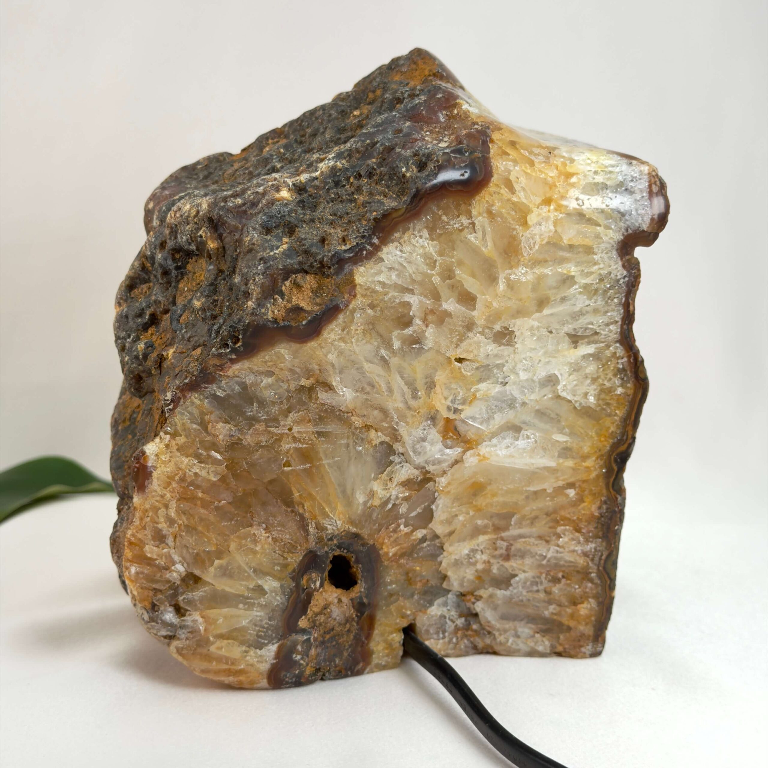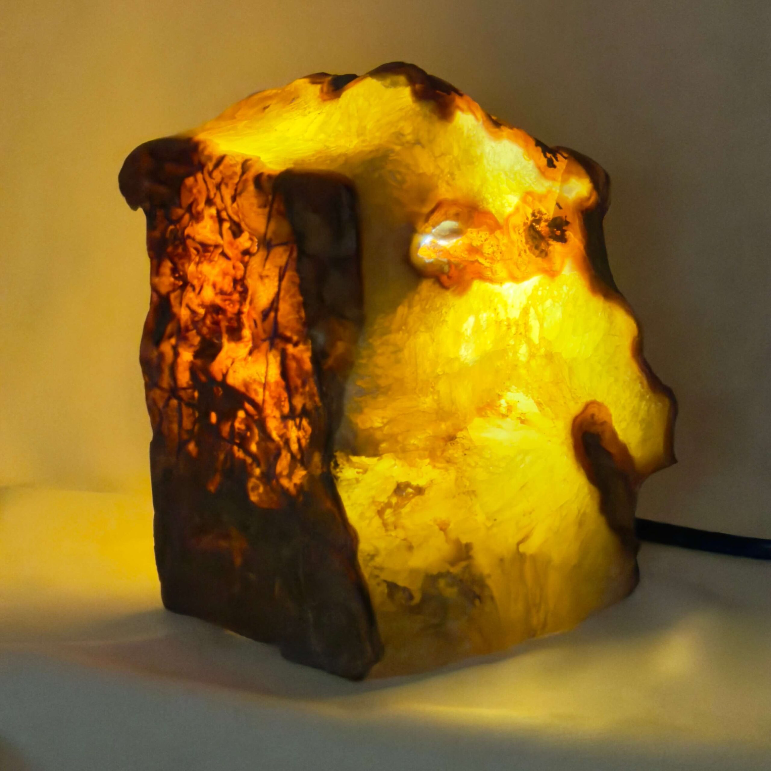 En agat lampe er en lampe lavet af naturlig agat, hvor lyset fremhæver stenens unikke mønstre og farvespil.