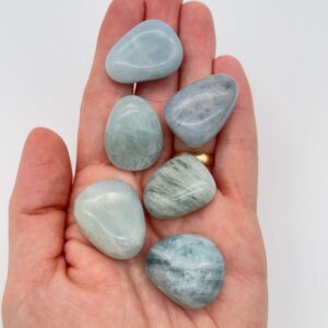 Denne fine akvamarin er en blid og opløftende krystal, som åbner for ro, klarhed og kommunikation. Den forbindes ofte med havets energi og giver en følelse af friskhed, lethed og flow. Akvamarin dæmper stress, hjælper til at slippe bekymringer og giver mod til at stå frem med sin egen sandhed. At holde en Akvamarin i hånden føles som at dykke ned i klart, stille vand. Energien fra krystallen køler, renser og bringer ro i sindet. Akvamarin er særligt kendt som kommunikationssten. Den styrker evnen til at tale klart, ærligt og fra hjertet. Men den rækker længere end blot kommunikation. Akvamarin hjælper med at berolige sindet og slippe gamle mønstre af frygt og bekymring. Den dæmper angst og giver følelsen af tryghed. Den inviterer til at gå med livets strøm frem for at kæmpe imod, og den hjælper til at se udfordringer fra et mere roligt og balanceret perspektiv. Akvamarin håndpolerede lommesten sælges uspecificeret Prisen er for én