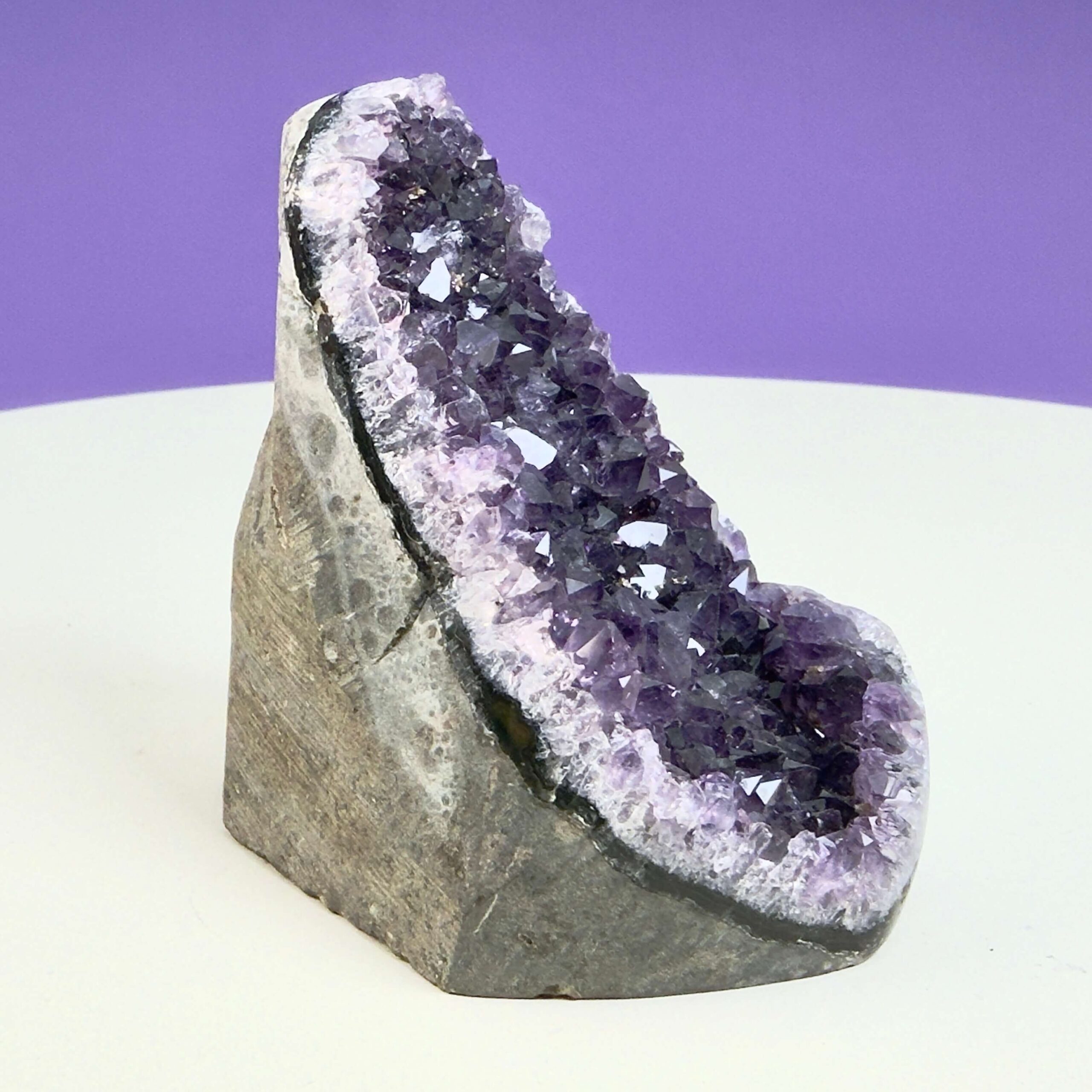 Denne Ametyst grotte er i kategorien one-of-a-kind, hvilket betyder, at det er grotten på billedet du køber. Prisen er for den ene krystal.