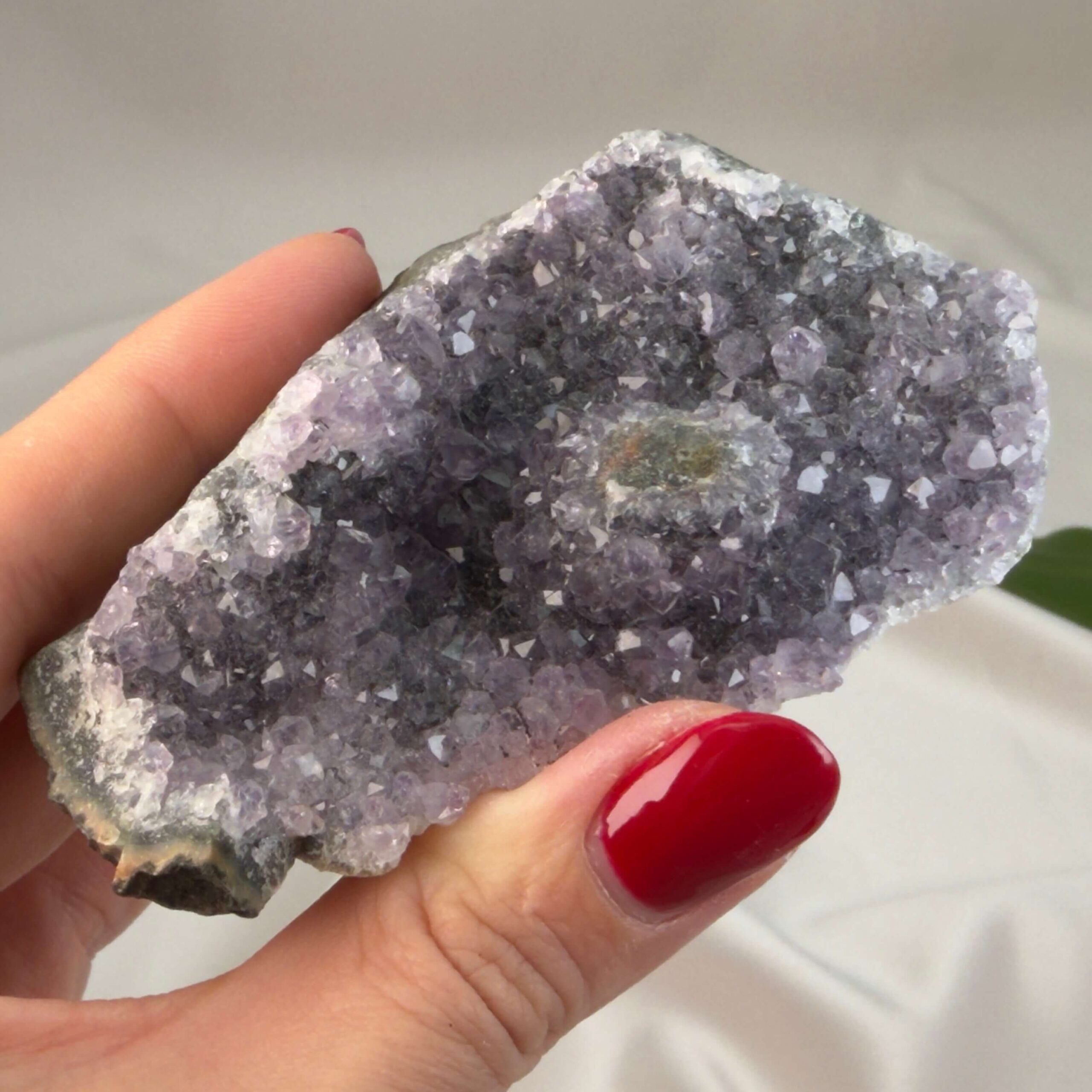 Energetisk balancerer Ametyst sindet og hjælper med at opnå en dybere selvindsigt. Den giver styrke til at slippe afhængigheder, gamle mønstre og destruktive tanker og den forbindes derfor både med spirituel vækst og praktisk livshjælp. Når livet føles kaotisk, giver en Ametyst klynge et fast holdepunkt og minder dig om, at ro findes indeni.