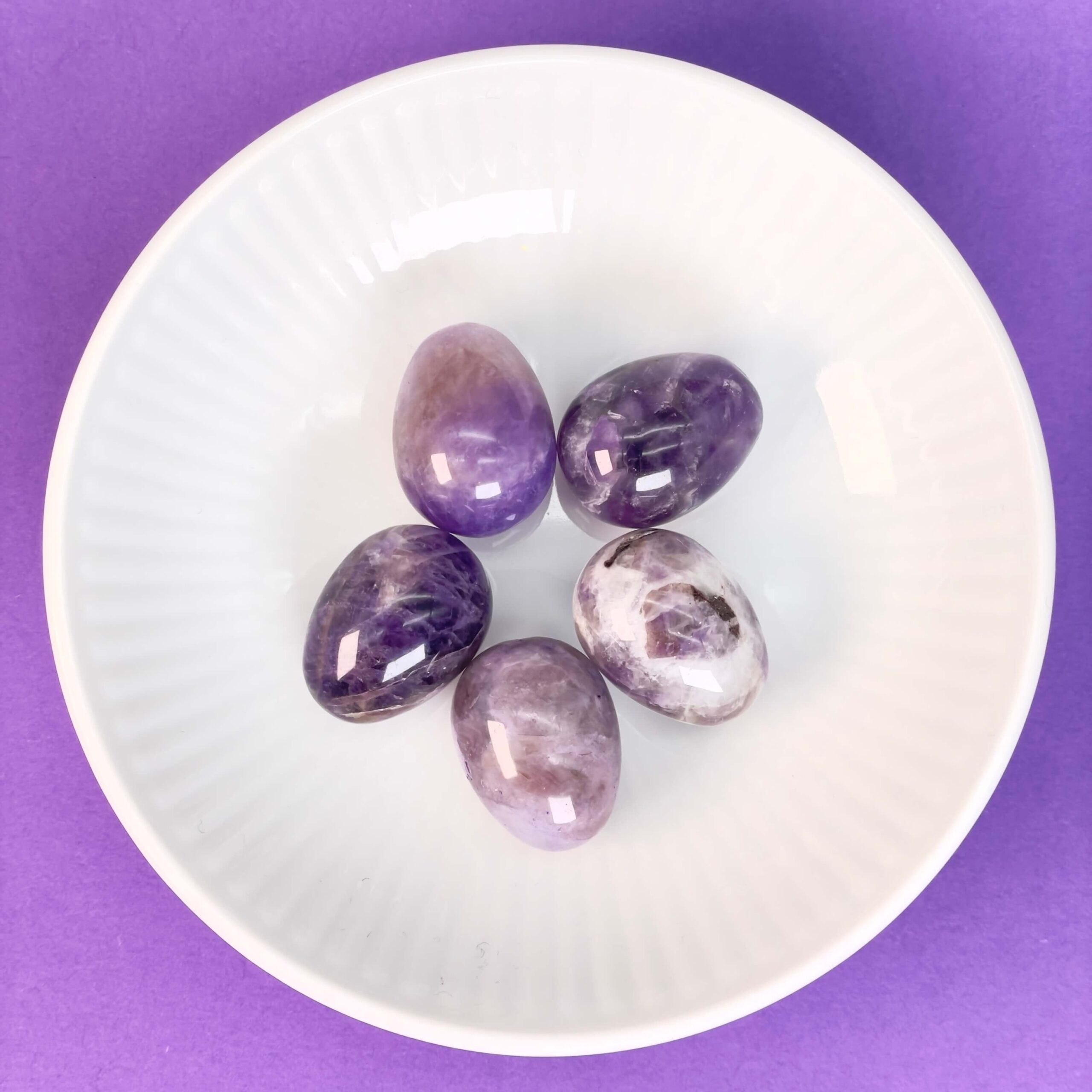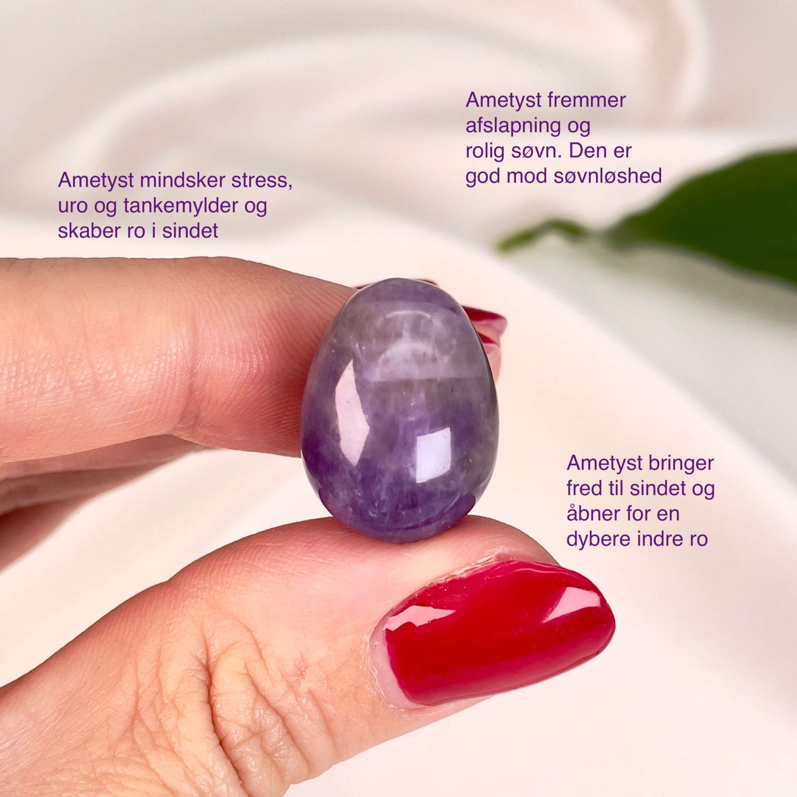 Ro og afstressning: Ametyst mini æg dæmper uro og nervøsitet.