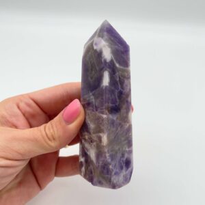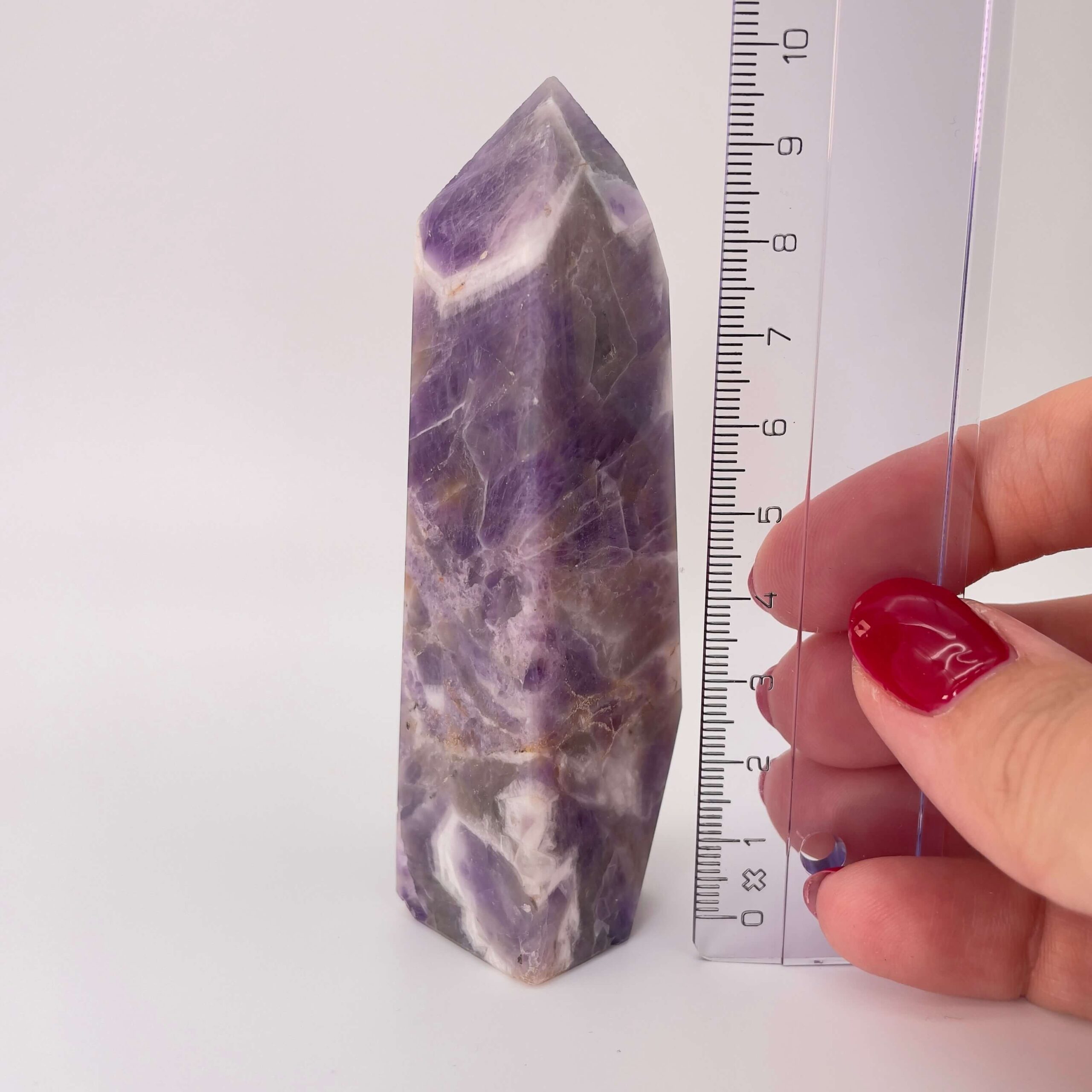 Denne Ametyst obelisk er i kategorien One-Of-A-Kind, som betyder at det er obelisken på billedet du køber. Prisen er for den éne.