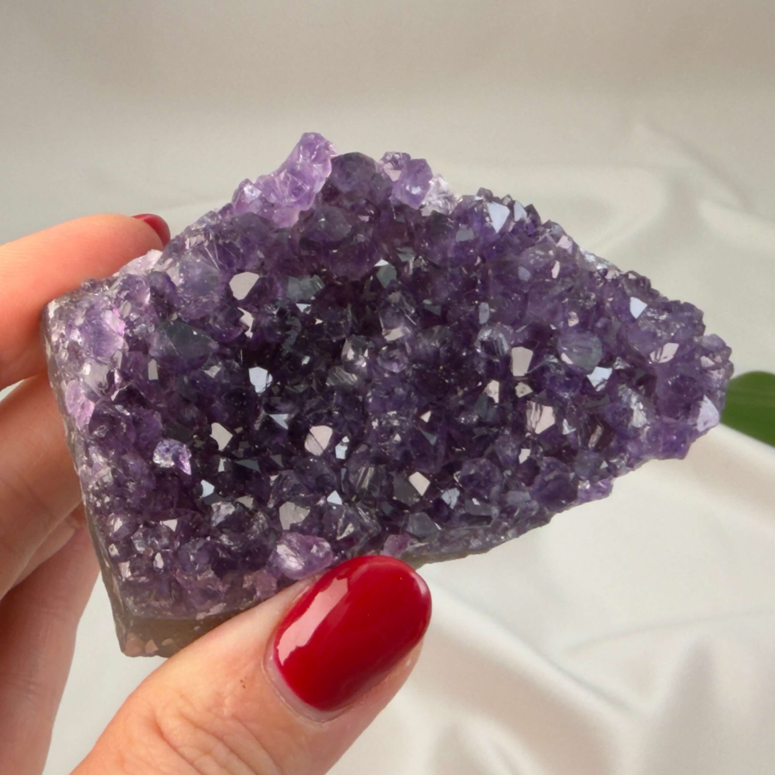 Energetisk balancerer Ametyst sindet og hjælper med at opnå en dybere selvindsigt. Den giver styrke til at slippe afhængigheder, gamle mønstre og destruktive tanker og den forbindes derfor både med spirituel vækst og praktisk livshjælp. Når livet føles kaotisk, giver en Ametyst premium klynge et fast holdepunkt og minder dig om, at ro findes indeni.