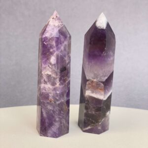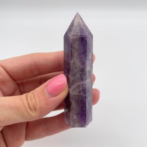 Ametyst er en af de mest ikoniske og elskede krystaller. En sten, der gennem årtusinder har været forbundet med åndelig klarhed, ro og beskyttelse. Med sine dybe violette nuancer udstråler den både mystik og harmoni. Ametyst er en af de vigtigste sten til meditation og spirituel udvikling. Den åbner forbindelsen til intuition, hjælper med at slippe negative mønstre og styrker evnen til at stole på din egen indre stemme. Den bliver også brugt af mange til at dæmpe stress, uro og søvnbesvær, og den kaldes ofte for “anti-stress-stenen”. Ametyst tårn sælges uspecificeret. Prisen er per styk.
