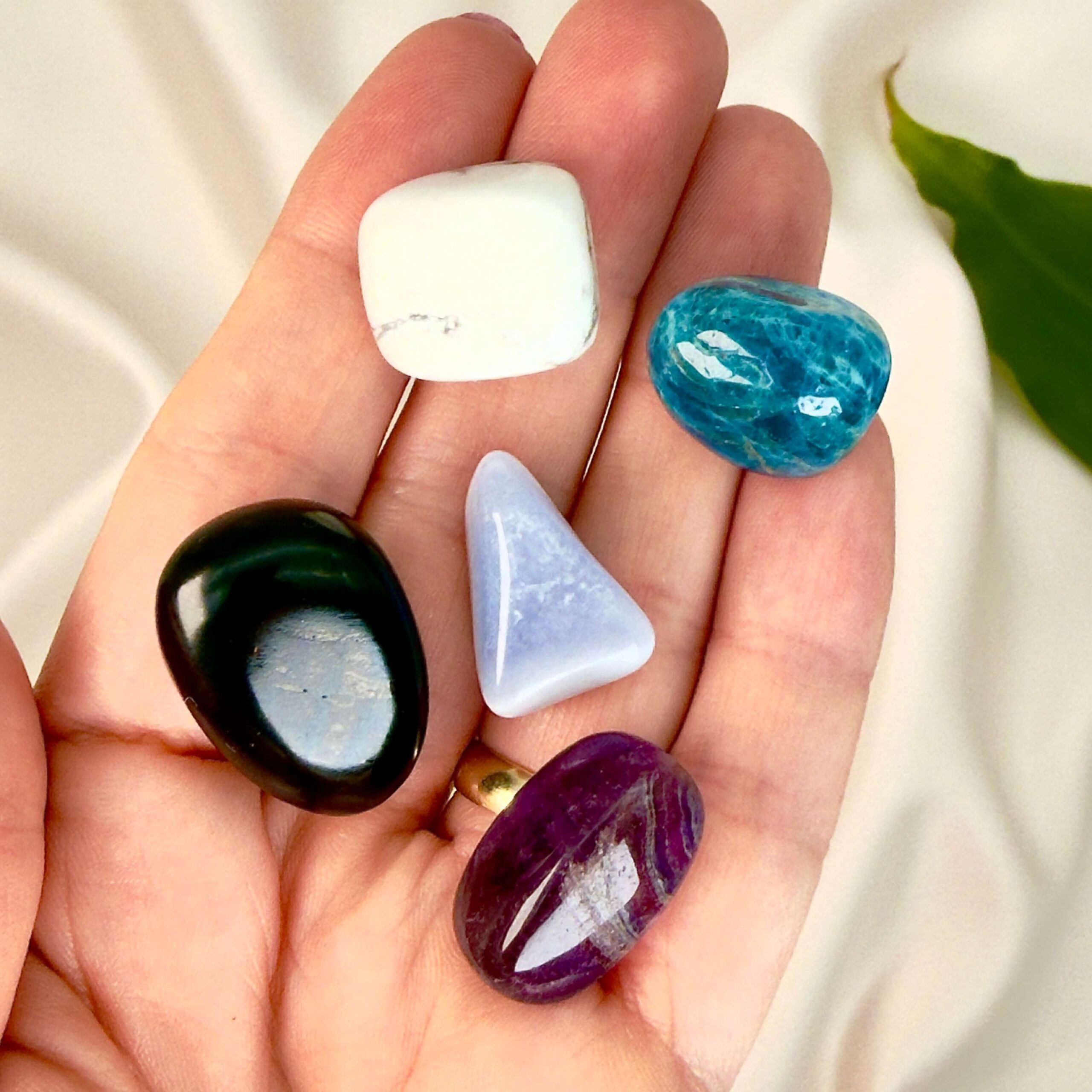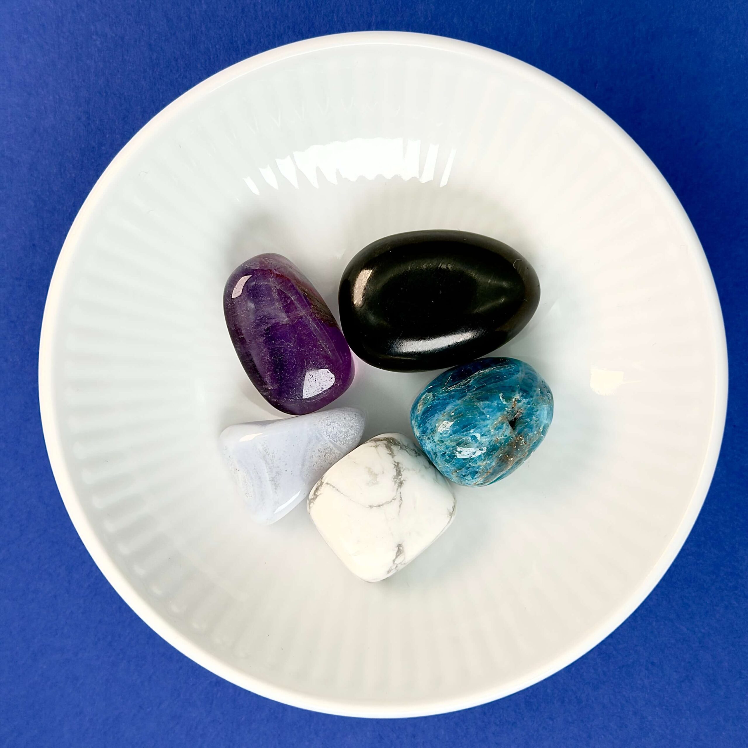 Dette healingssæt er sammensat til at skabe ro, tryghed og balance, når angsten melder sig. Krystallerne hjælper med at berolige sindet, forløse uro og bringe følelsen af sikkerhed og stabilitet tilbage. En kærlig støtte, der minder dig om, at du er tryg lige her og nu.
