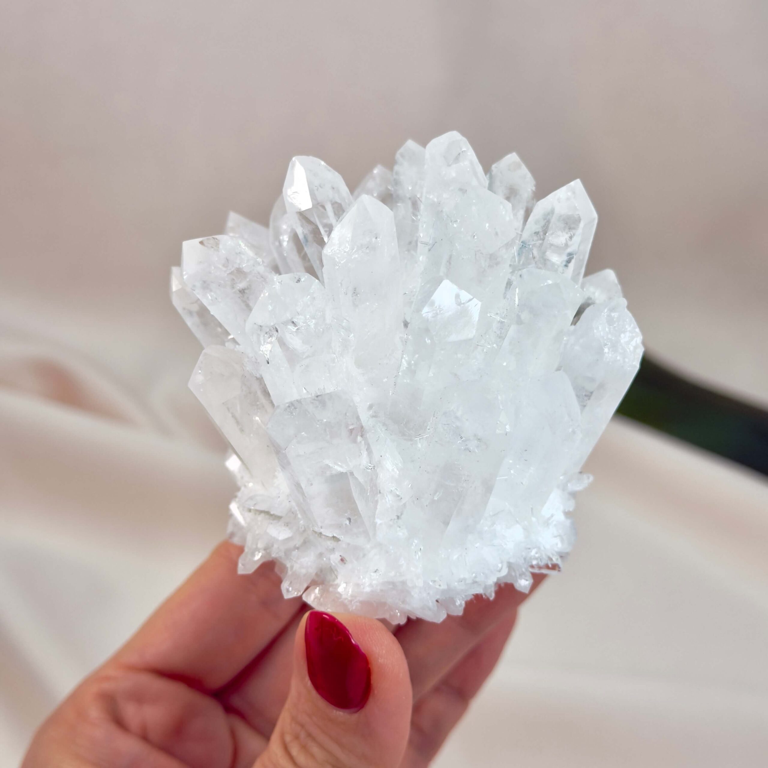 Bjergkrystal klynge er naturlige formationer hvor flere krystaller vokser sammen fra samme base eller modersten. Hver klynge er et unikt kunstværk skabt af naturen over millioner af år. Krystallerne peger i forskellige retninger og skaber et kraftfuldt energifelt, hvor hver spids amplificerer og sender energi ud i rummet. Klynger er særligt kraftfulde til at rense og oplade andre krystaller, da deres mange spidser skaber et intenst energifelt. De bruges traditionelt til at hæve vibration i rum, rense negative energier og skabe et harmonisk miljø. Mange placerer klynger i hjemmet, på alteret eller i healingrum for at opretholde høj energi. Bjergkrystal klynger fungerer også som naturlige energiforstærkere for manifestation og intention. De er perfekte til dem, der ønsker et kraftfuldt, selvhelende krystalværktøj.
