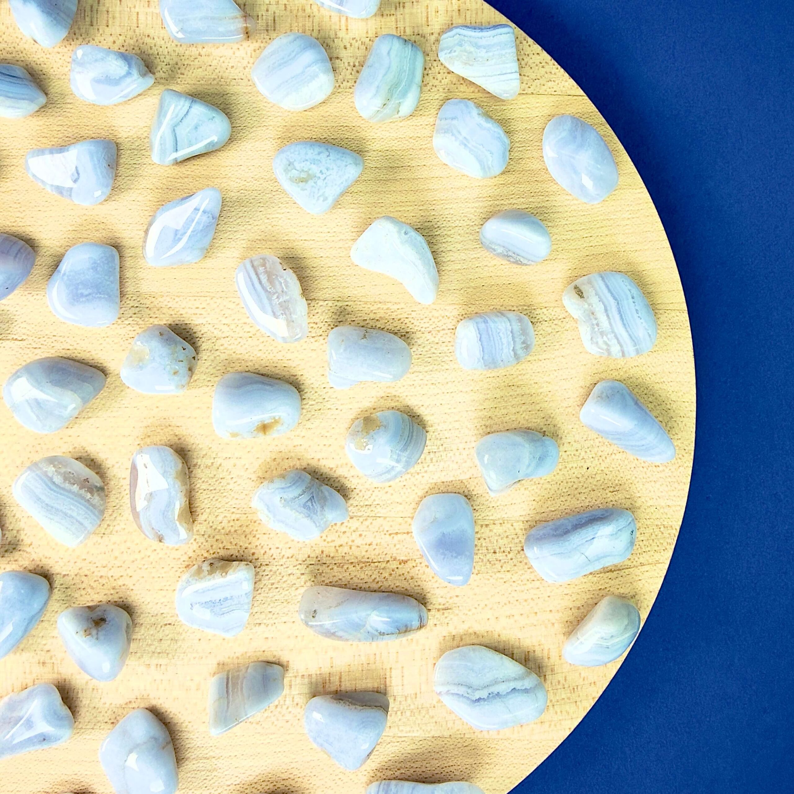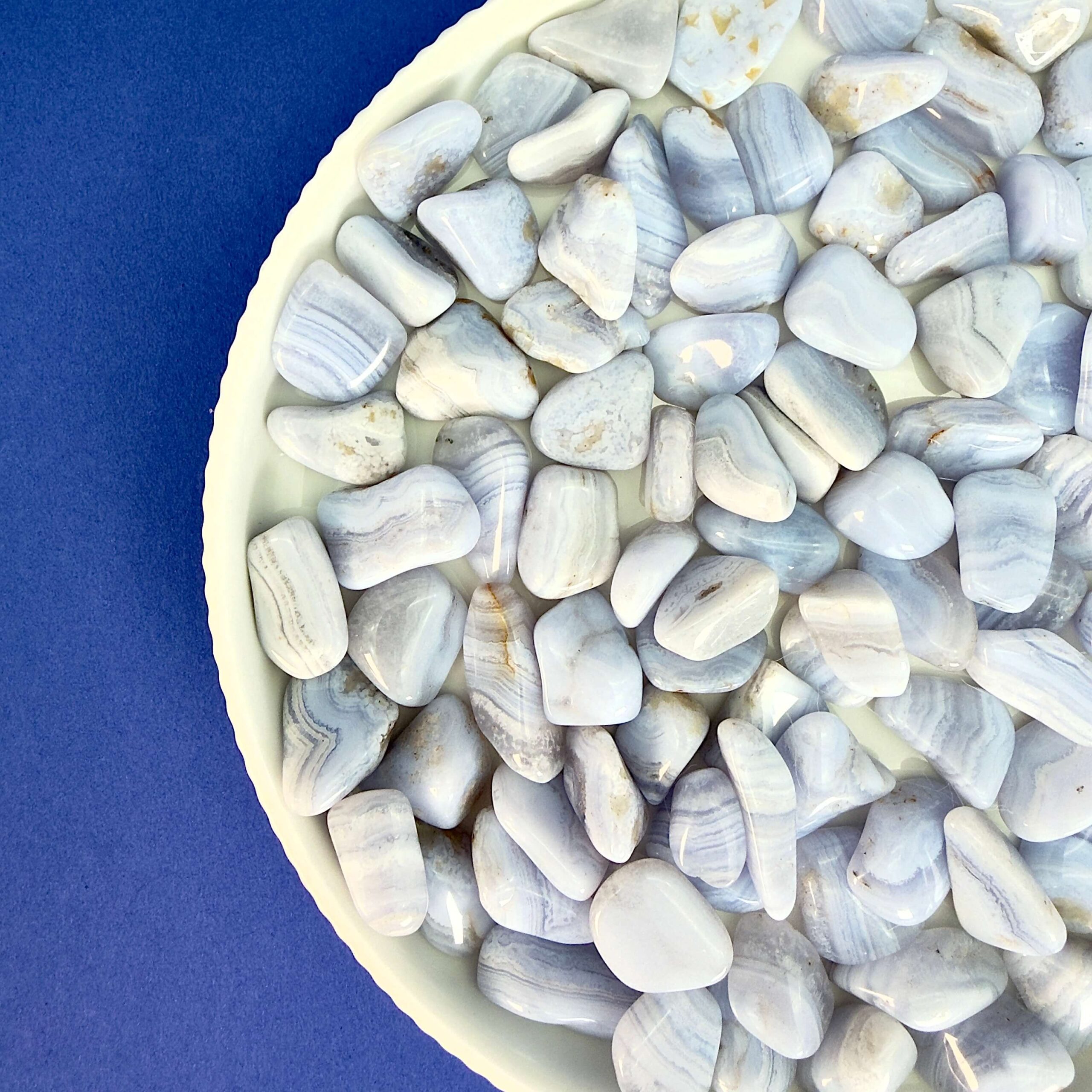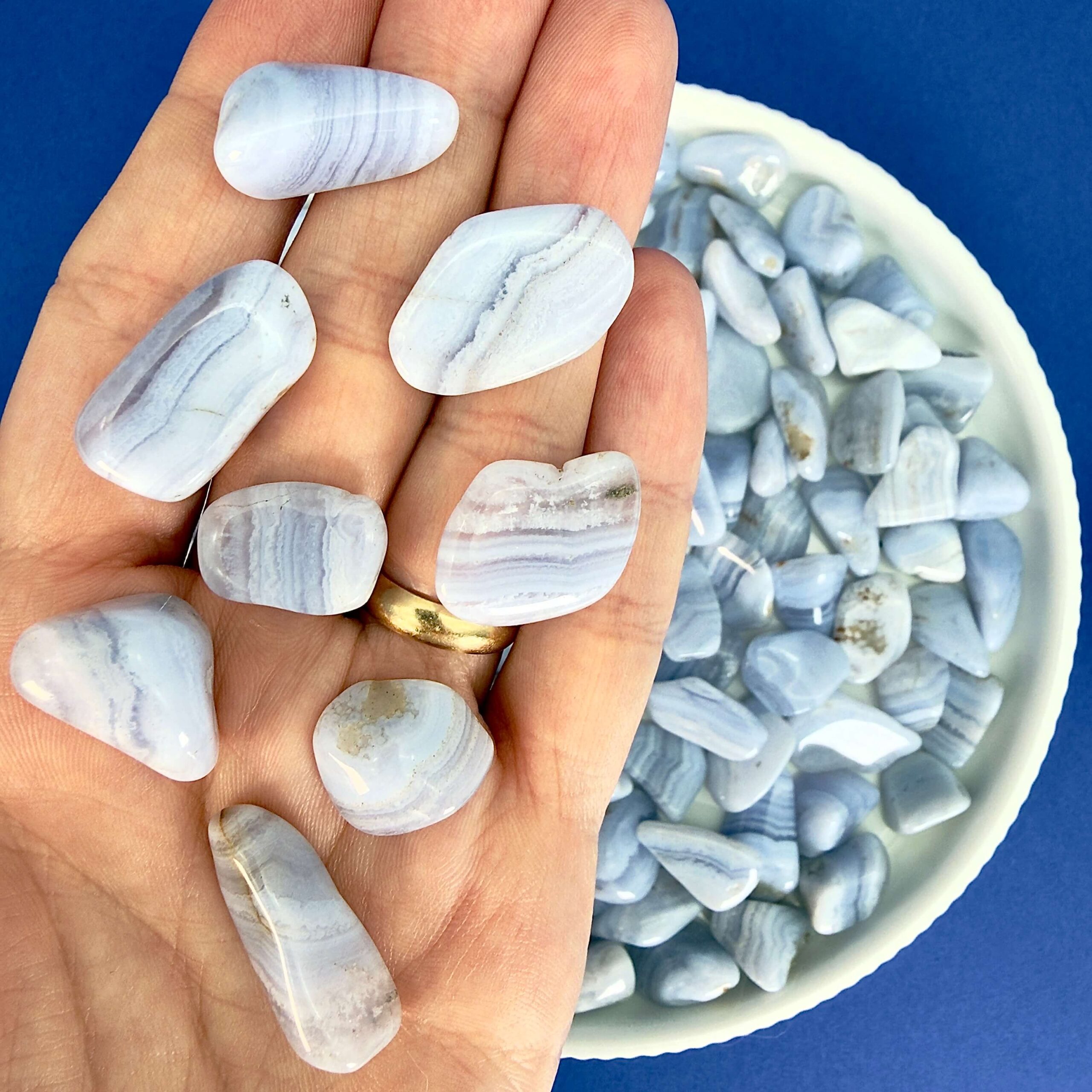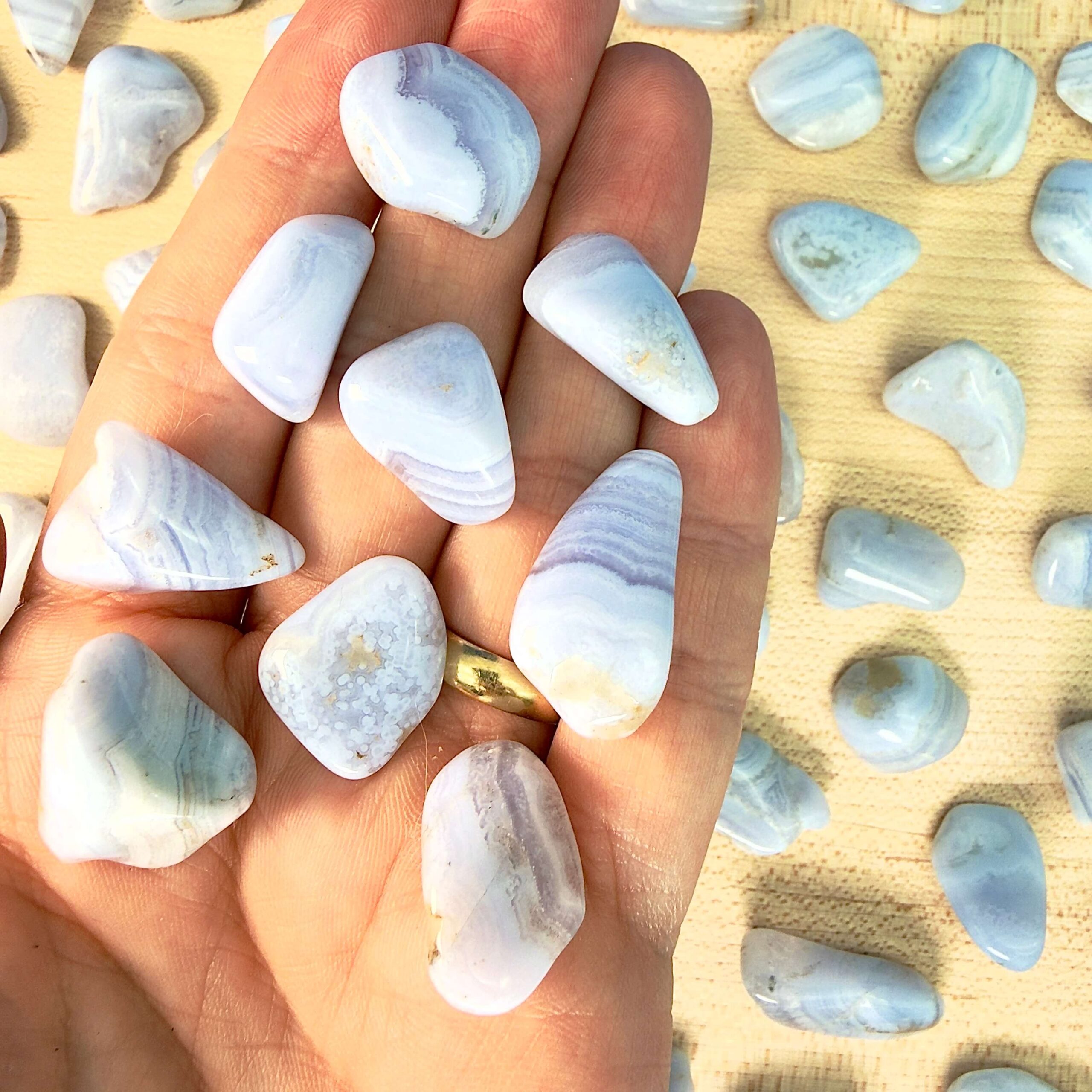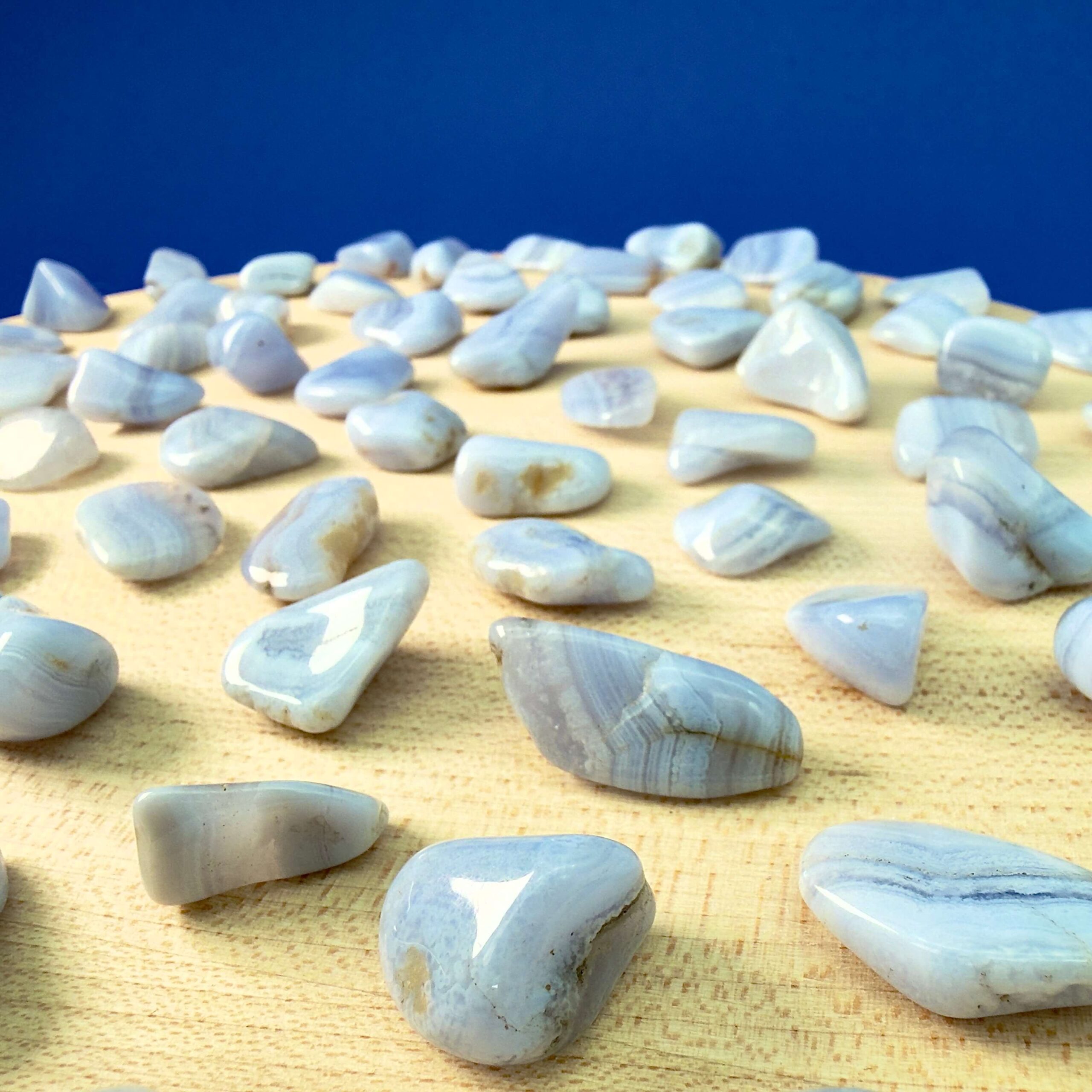 Blondeagat, også kendt som Blue Lace Agate, er en af de mest populære og elskede varianter af agat. Den stammer primært fra Namibia, men findes også i mindre mængder i Botswana, Sydafrika, Brasilien og Indien. De særlige formationer af blå og hvide bånd i blondeagaten gør hver sten unik.