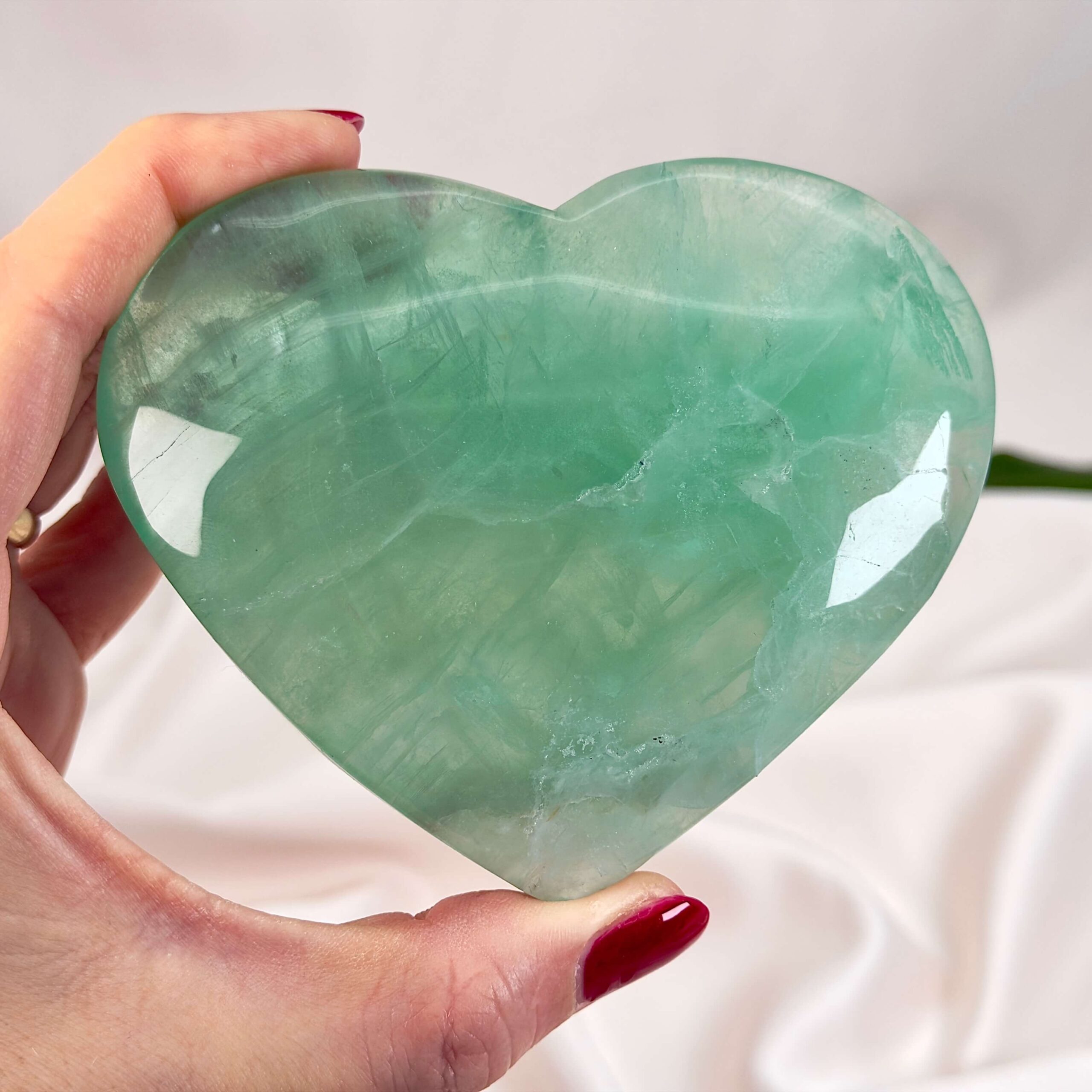 Hjertehealing: Fluorit Grøn hjerte åbner hjertet og støtter følelsesmæssig healing og fornyelse.