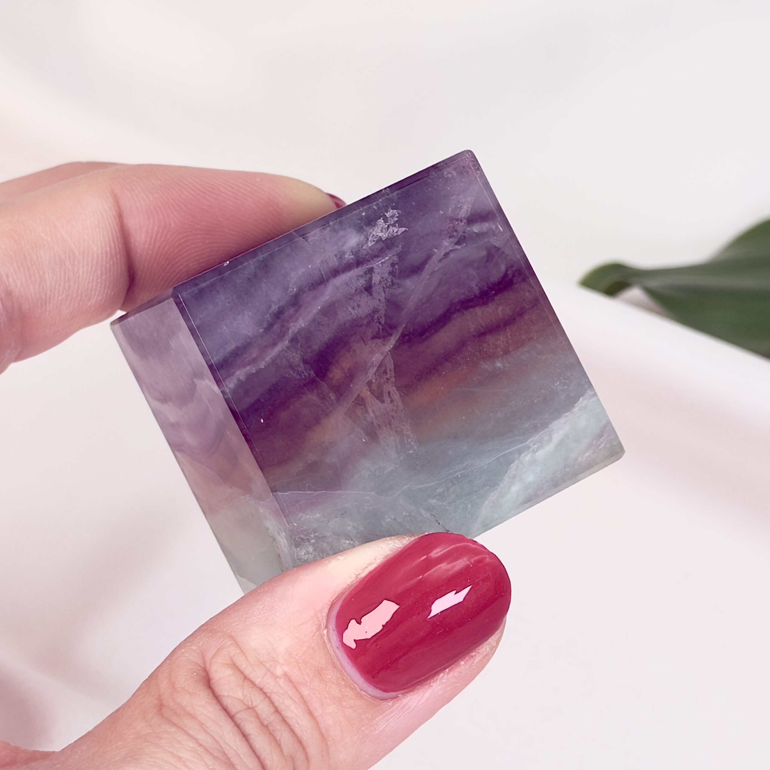 Denne Fluorit Regnbue Kube er i kategorien One-Of-A-Kind, som betyder at det er Kuben på billedet du køber