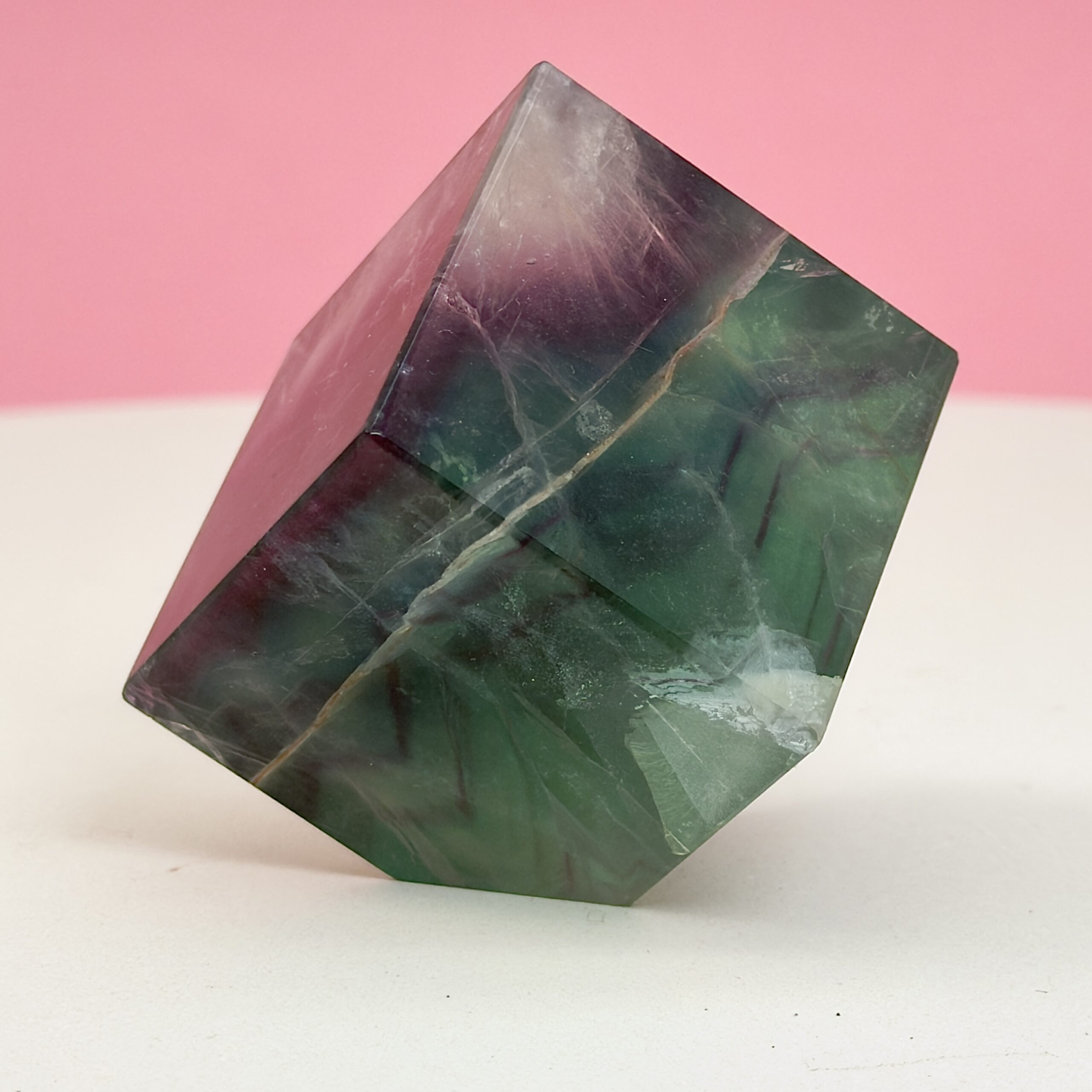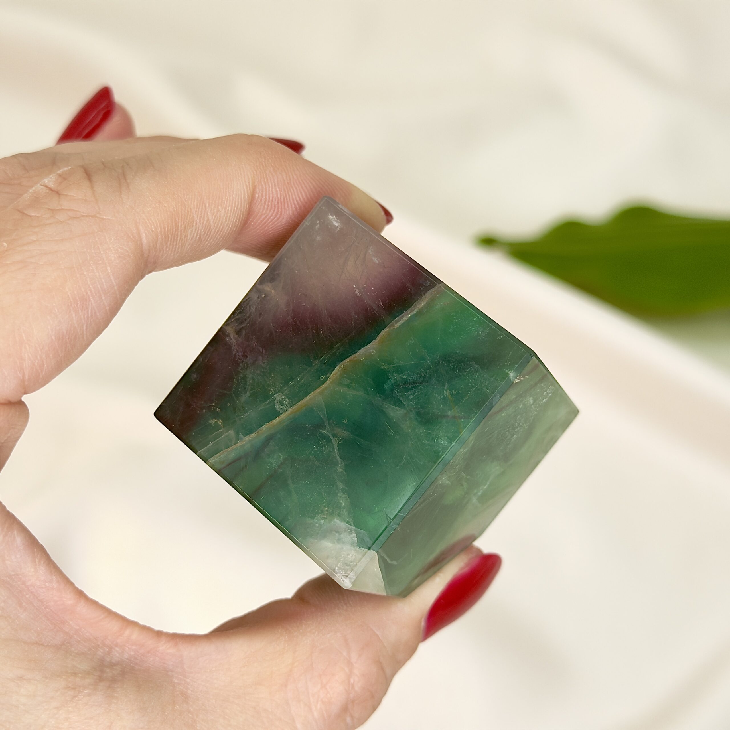 Denne Regnbue Fluorit Kube er i kategorien One-Of-A-Kind, som betyder at det er Kuben på billedet du køber