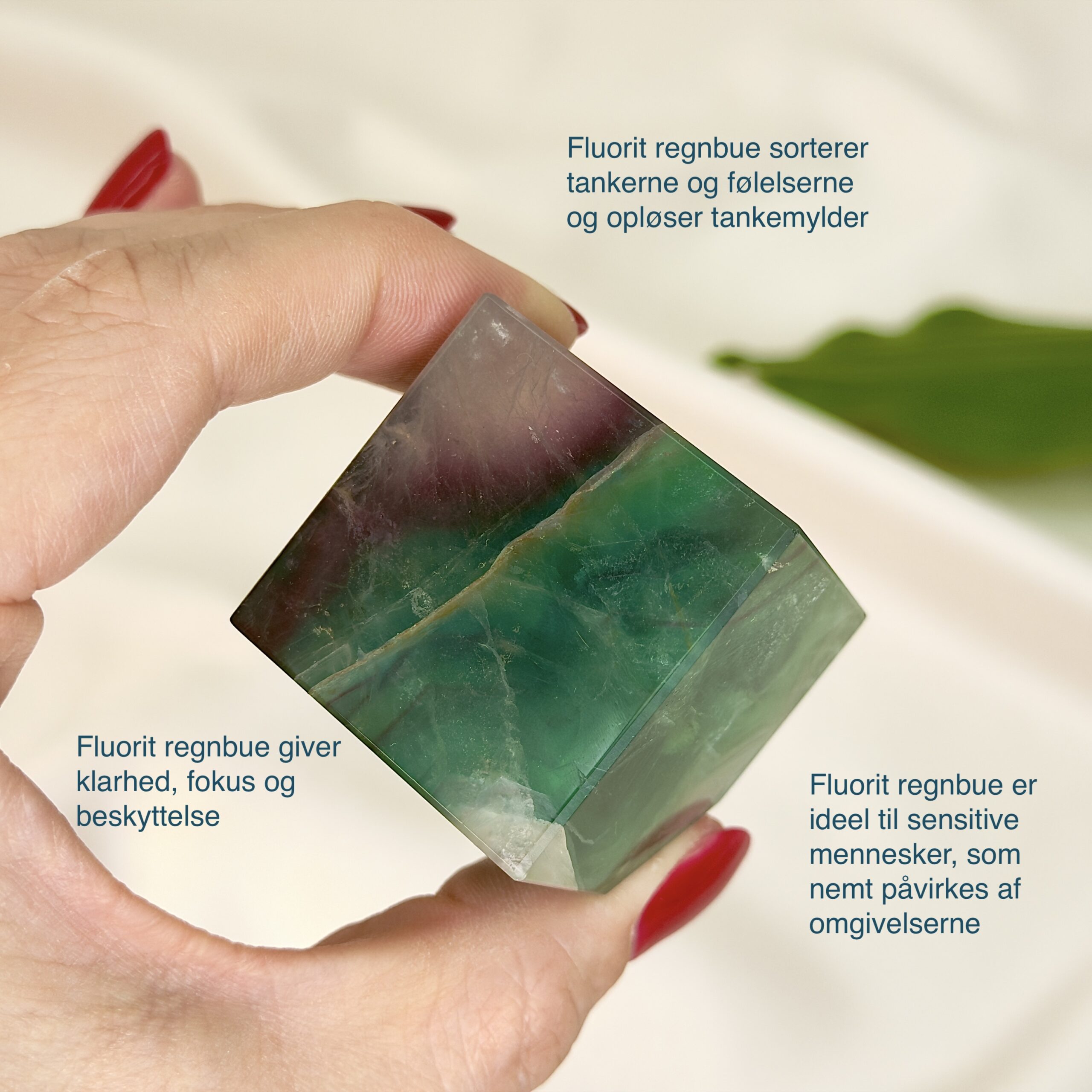 Balance: Regnbue Fluorit kube skaber harmoni mellem følelser, tanker og krop.