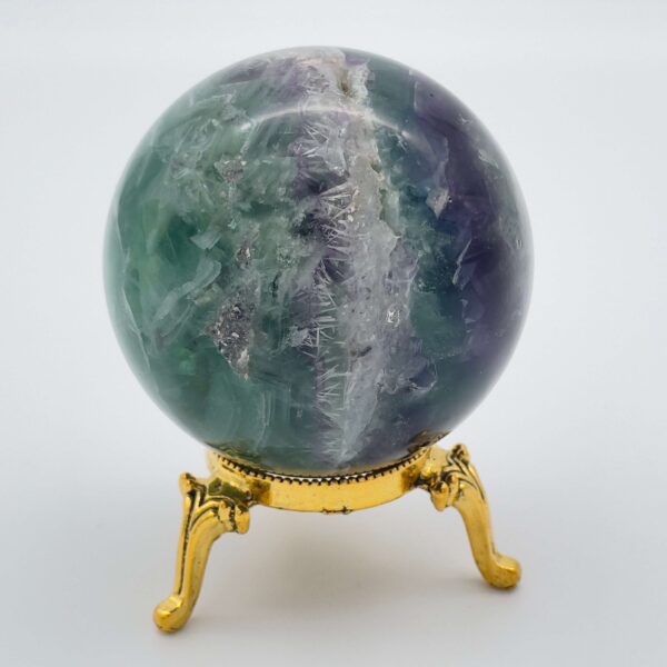 Denne Regnbue Fluorit Kugle er i kategorien One-Of-A-Kind, som betyder at det er Kuglen på billedet du køber