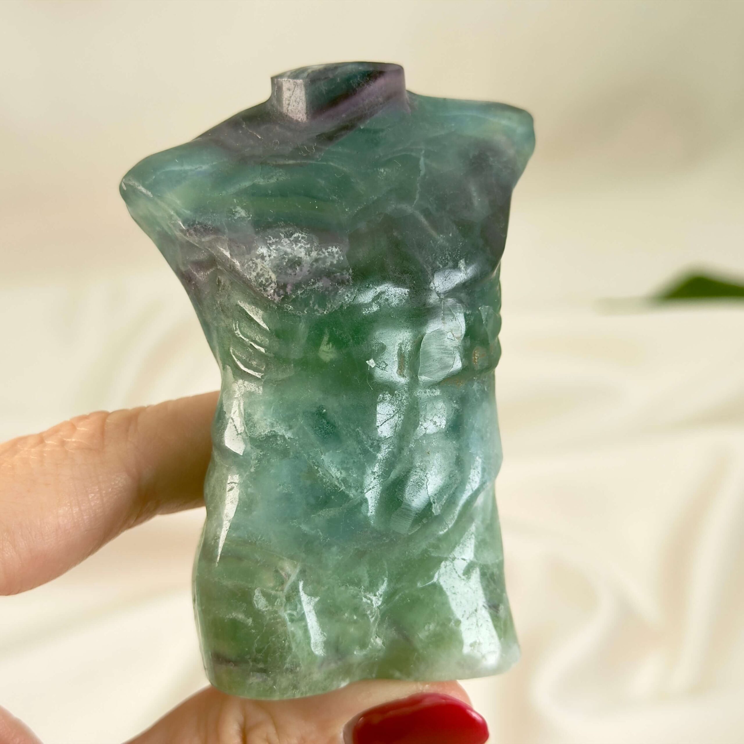 Som dekorativ figur er en Fluorit Regnbue Mandekrop både et kunstobjekt og et symbol, der bringer dybde, ro og karakter ind i hjemmet eller arbejdsrummet.