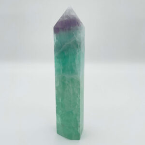 Denne smukke Regnbue Fluorit er en af de mest farvestrålende og alsidige krystaller i krystalverdenen. Den er elsket af mange både pga. af sine egenskaber, men i særdeleshed også pga. sine mange flotte farver og farvespil. Regnbue Fluorit findes i smukke bånd af lilla, grøn, blå, gul og gennemsigtige lag, som fanger lyset og lader det danse indeni stenen. Regnbue Fluorit giver klarhed, fokus og beskyttelse. Den er særlig kendt for at hjælpe med at sortere tankerne og følelserne, opløse tankemylder og skabe overblik, så du kan fokusere på det, der er vigtigt og det, som virkelig betyder noget. Dette Regnbue Fluorit Tårn er i kategorien One-Of-A-Kind, som betyder at det er tårnet på billedet du køber. Prisen er for den éne.