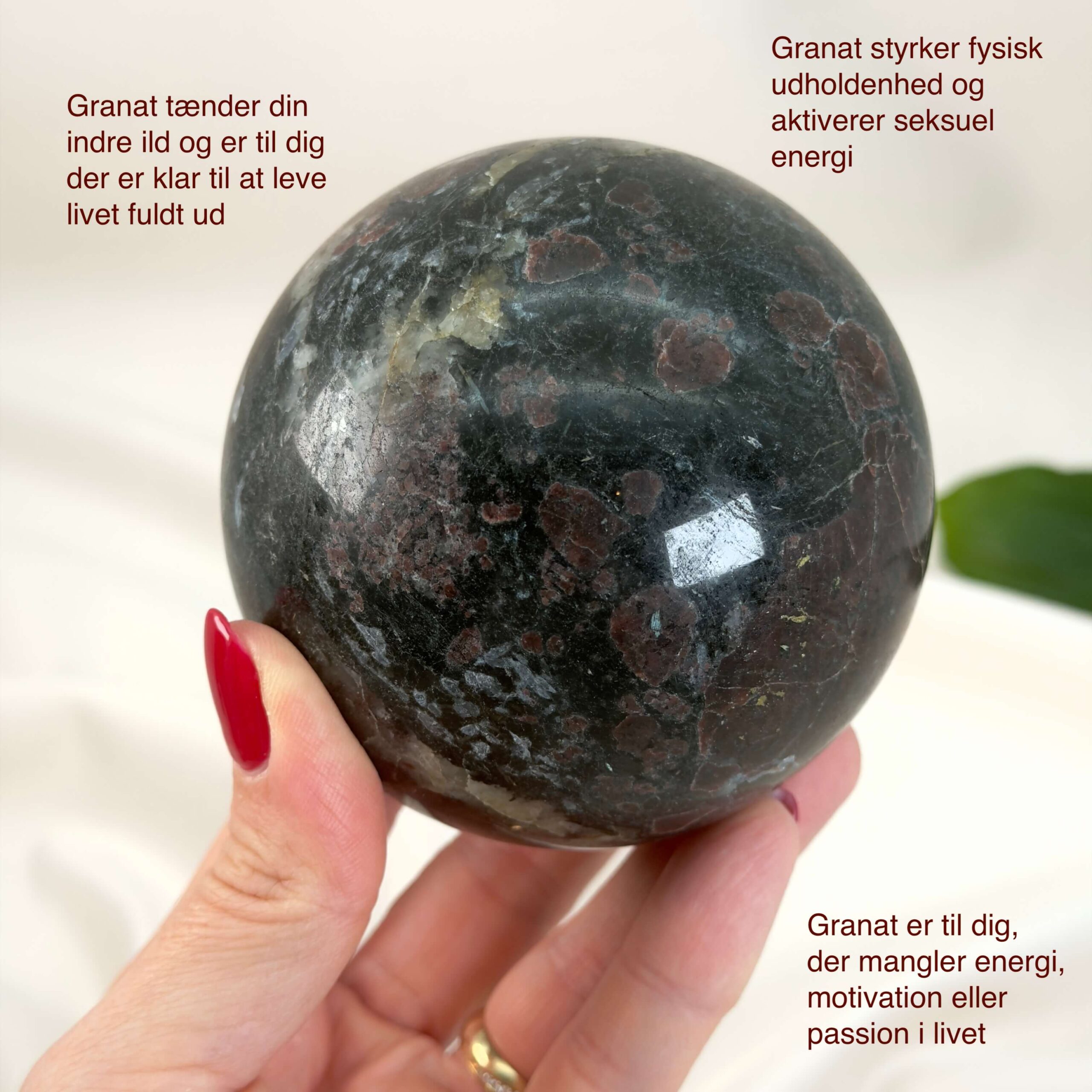 Vitalitet: En Granat Kugle styrker fysisk energi, udholdenhed og livskraft.