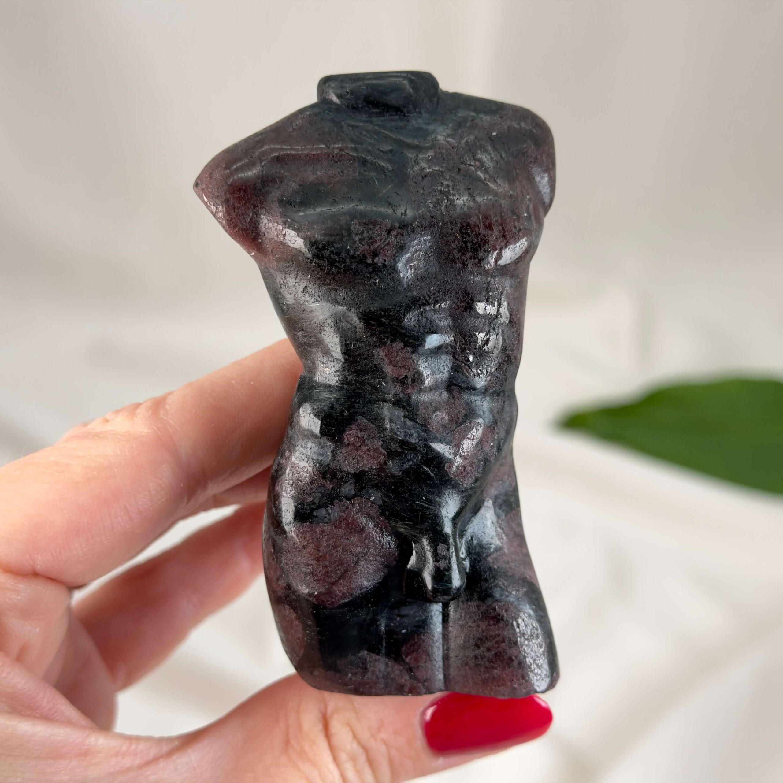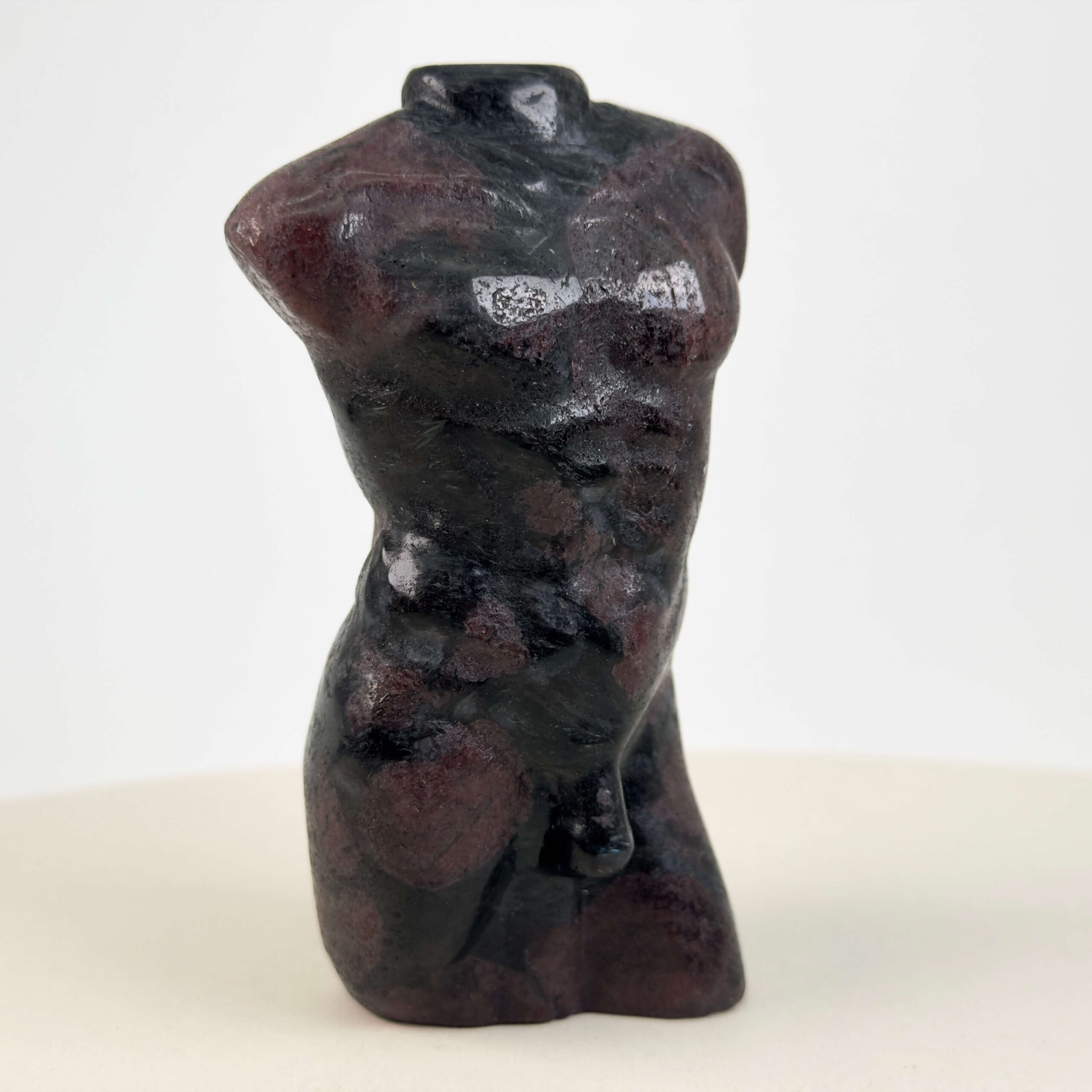 Krystaller skåret som en buste af en mand forener naturens rå materiale med menneskets form og symbolik. Udtrykket rummer både styrke, nærvær og refleksion og giver figuren en særlig tyngde og karakter. Mandekroppen leder tankerne mod antikkens skulpturer, hvor mennesket blev fremstillet som et udtryk for balance, visdom og indre kraft. Når denne form kombineres med krystallens naturlige struktur og energi, opstår et objekt, der både er kunstnerisk, sanseligt og meningsfuldt.