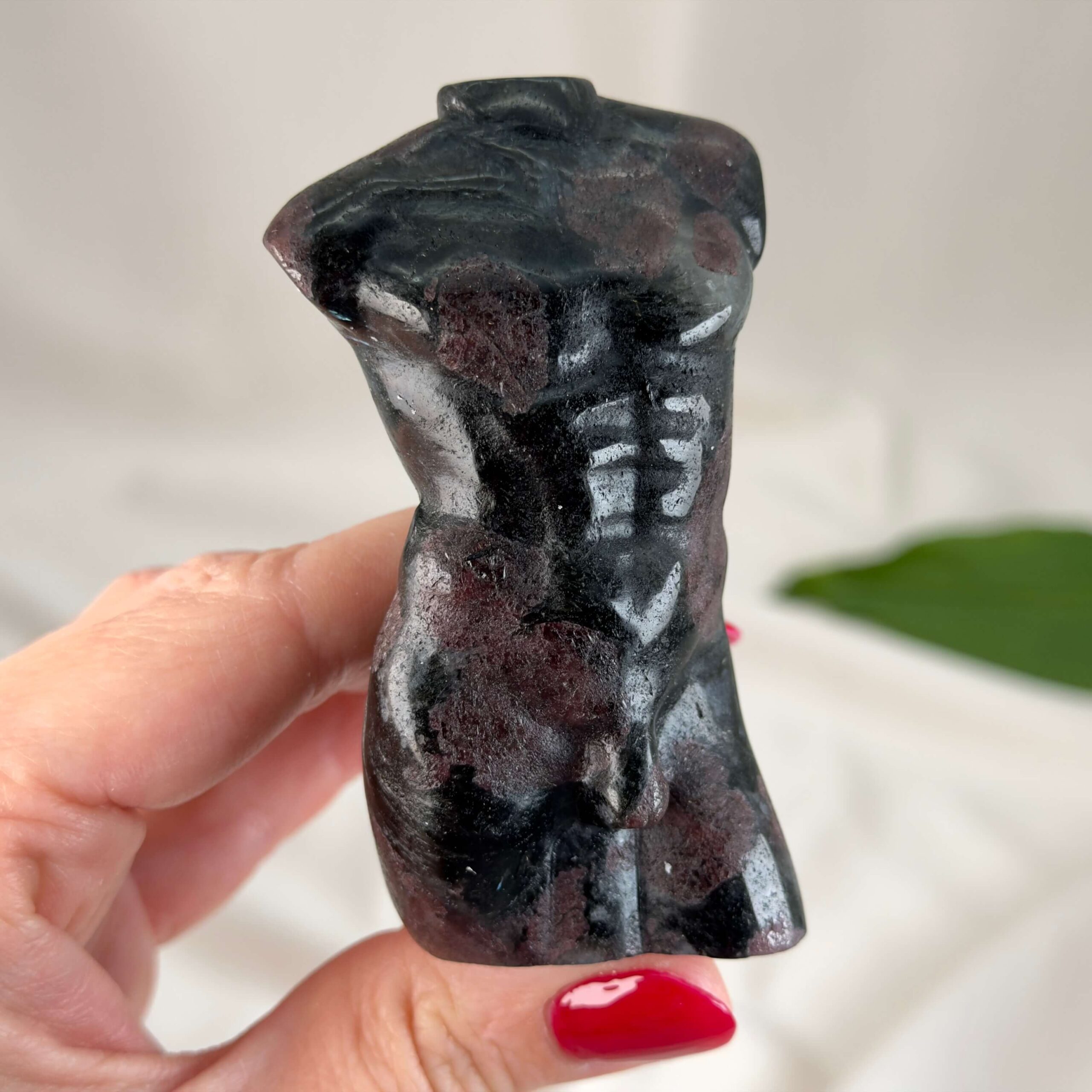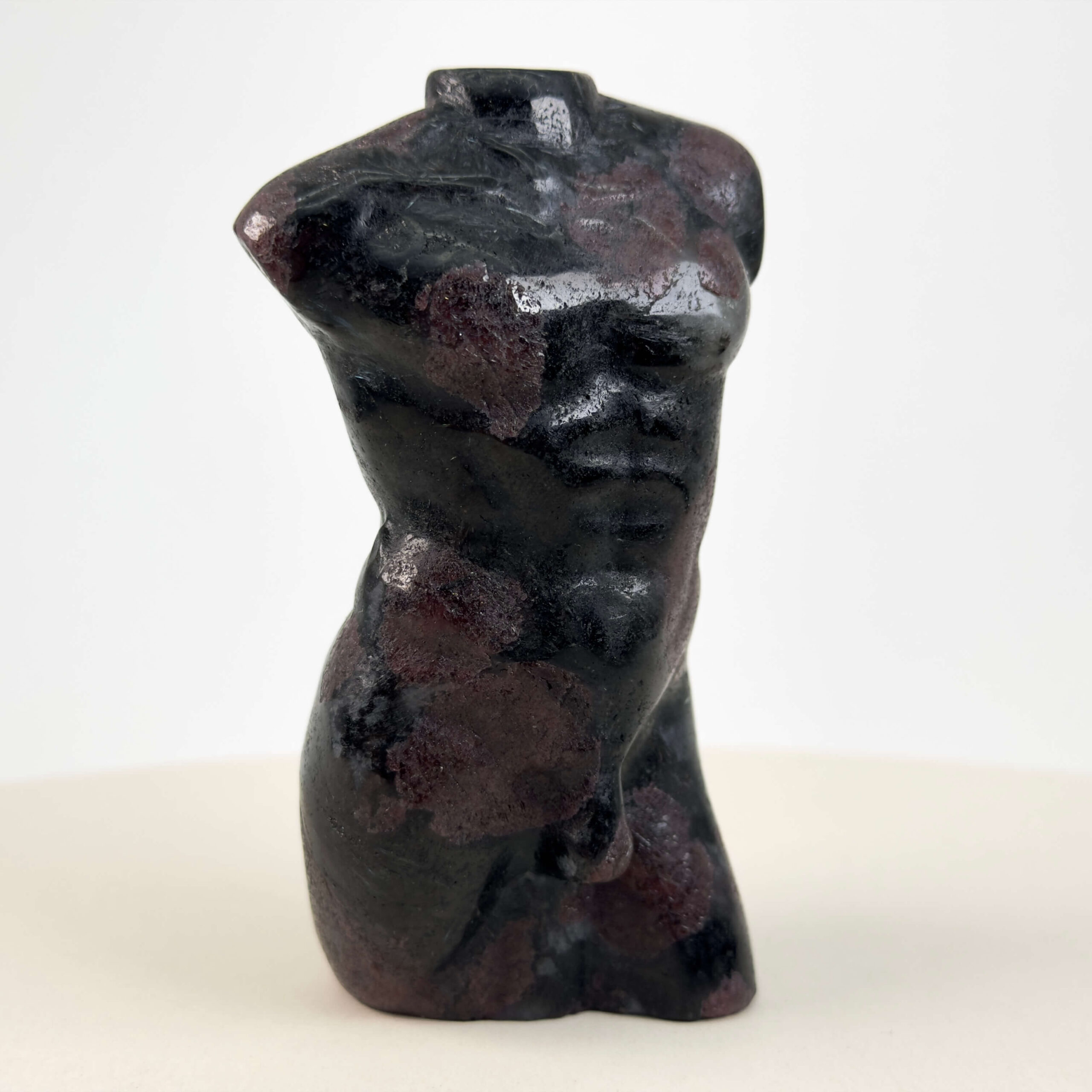 Krystaller skåret som en buste af en mand forener naturens rå materiale med menneskets form og symbolik. Udtrykket rummer både styrke, nærvær og refleksion og giver figuren en særlig tyngde og karakter. Mandekroppen leder tankerne mod antikkens skulpturer, hvor mennesket blev fremstillet som et udtryk for balance, visdom og indre kraft. Når denne form kombineres med krystallens naturlige struktur og energi, opstår et objekt, der både er kunstnerisk, sanseligt og meningsfuldt.