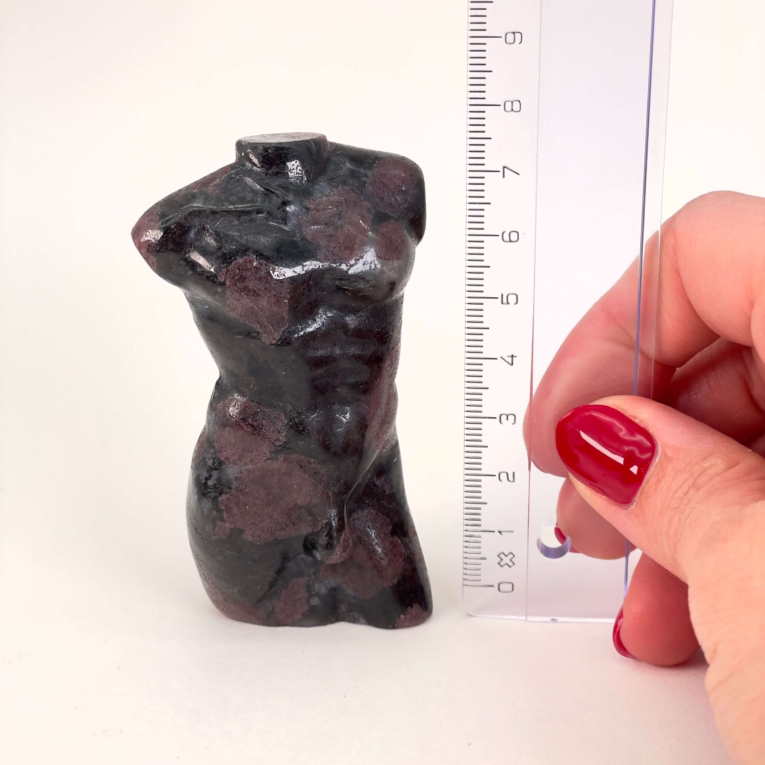 En Granat mandekrop kombinerer styrke og æstetik i én figur. De mørkerøde nuancer varierer fra dyb vinrød til mere transparente områder, hvilket giver et levende spil i stenen. Den glatte overflade og de enkle linjer skaber et moderne og stilfuldt udtryk. Figuren fungerer perfekt som en unik gave eller som et dekorativt element, der skiller sig ud og tilfører rummet varme og personlighed.