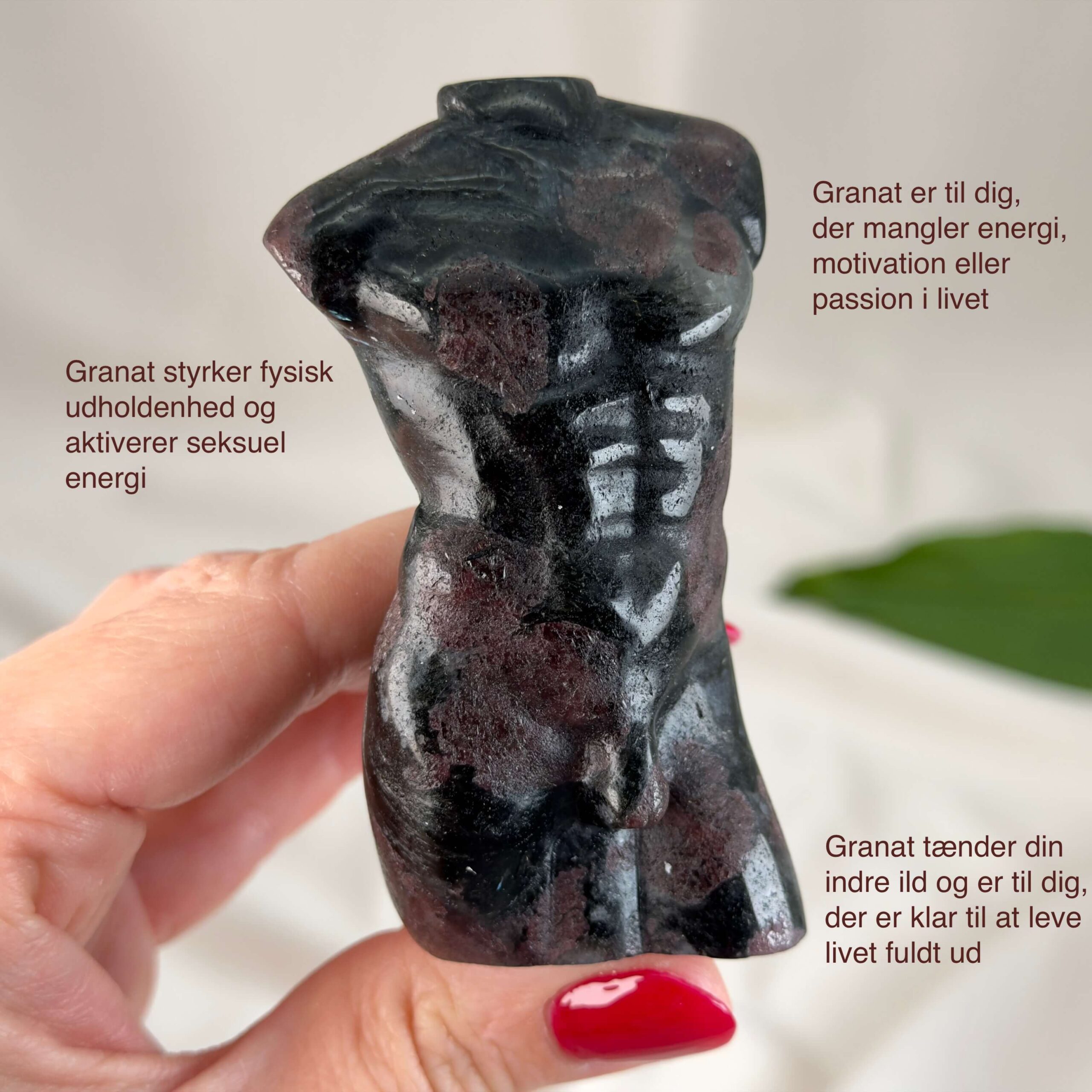 Denne Granat Mandekrop er i kategorien one-of-a-kind, hvilket vil sige, at det er krystallen på billedet du køber.