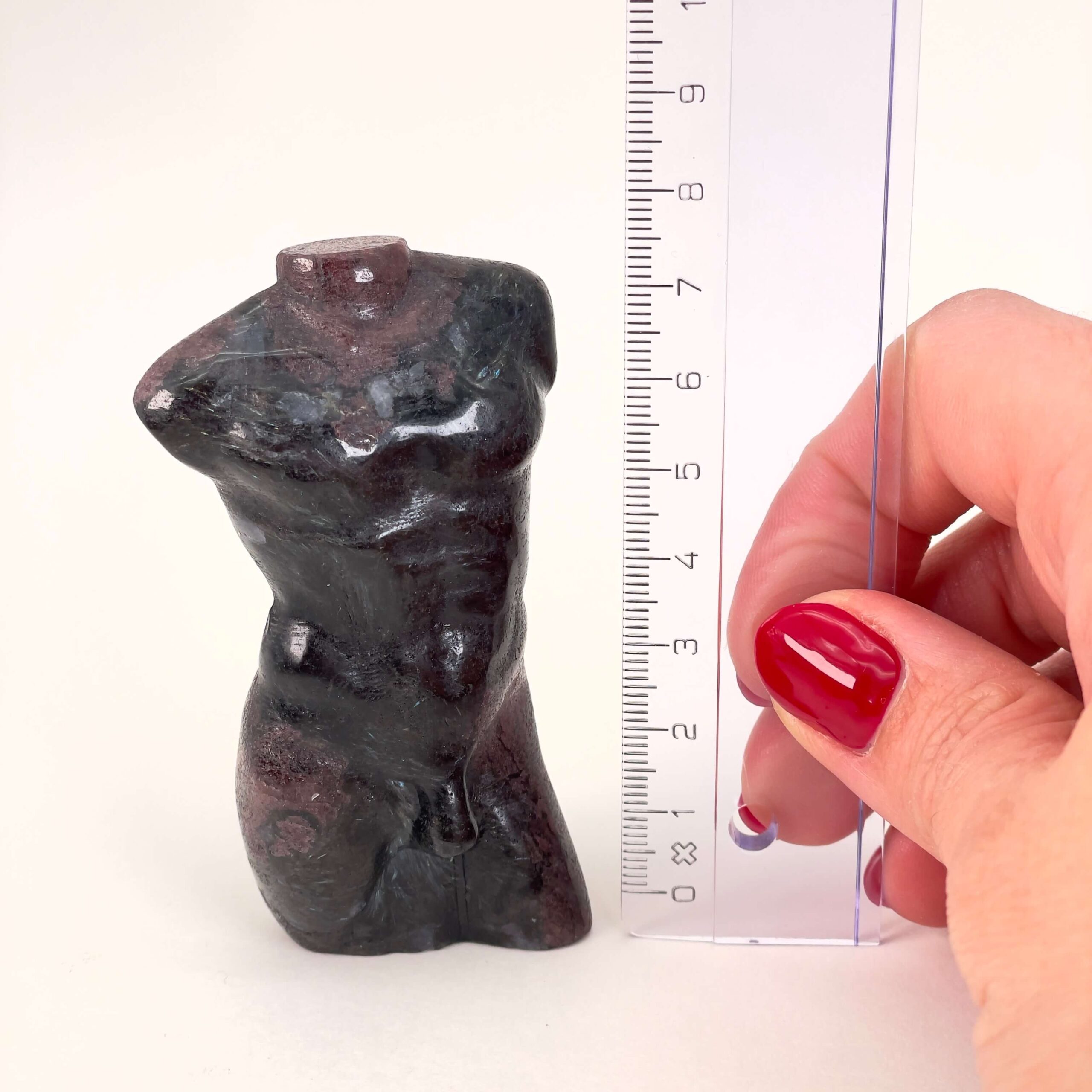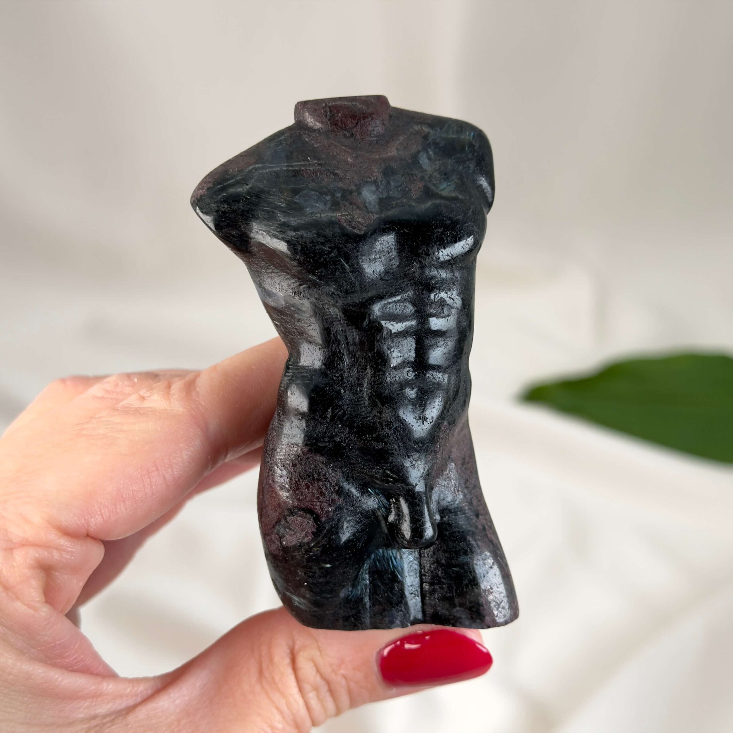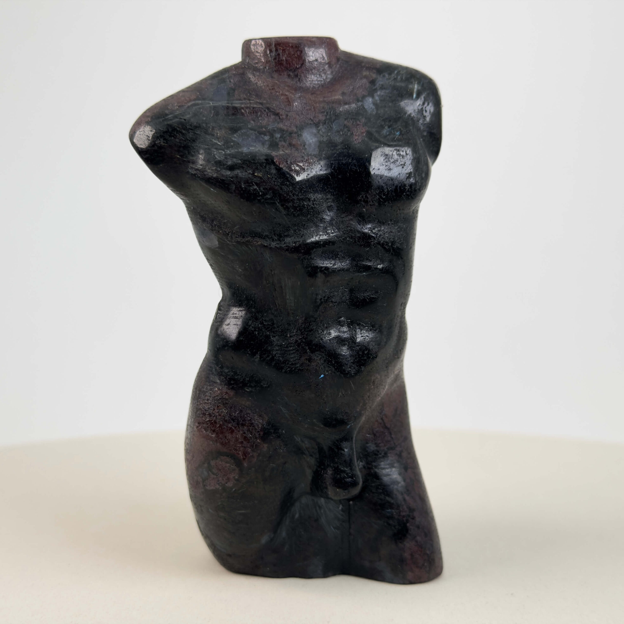 Krystaller skåret som en buste af en mand forener naturens rå materiale med menneskets form og symbolik. Udtrykket rummer både styrke, nærvær og refleksion og giver figuren en særlig tyngde og karakter. Mandekroppen leder tankerne mod antikkens skulpturer, hvor mennesket blev fremstillet som et udtryk for balance, visdom og indre kraft. Når denne form kombineres med krystallens naturlige struktur og energi, opstår et objekt, der både er kunstnerisk, sanseligt og meningsfuldt.