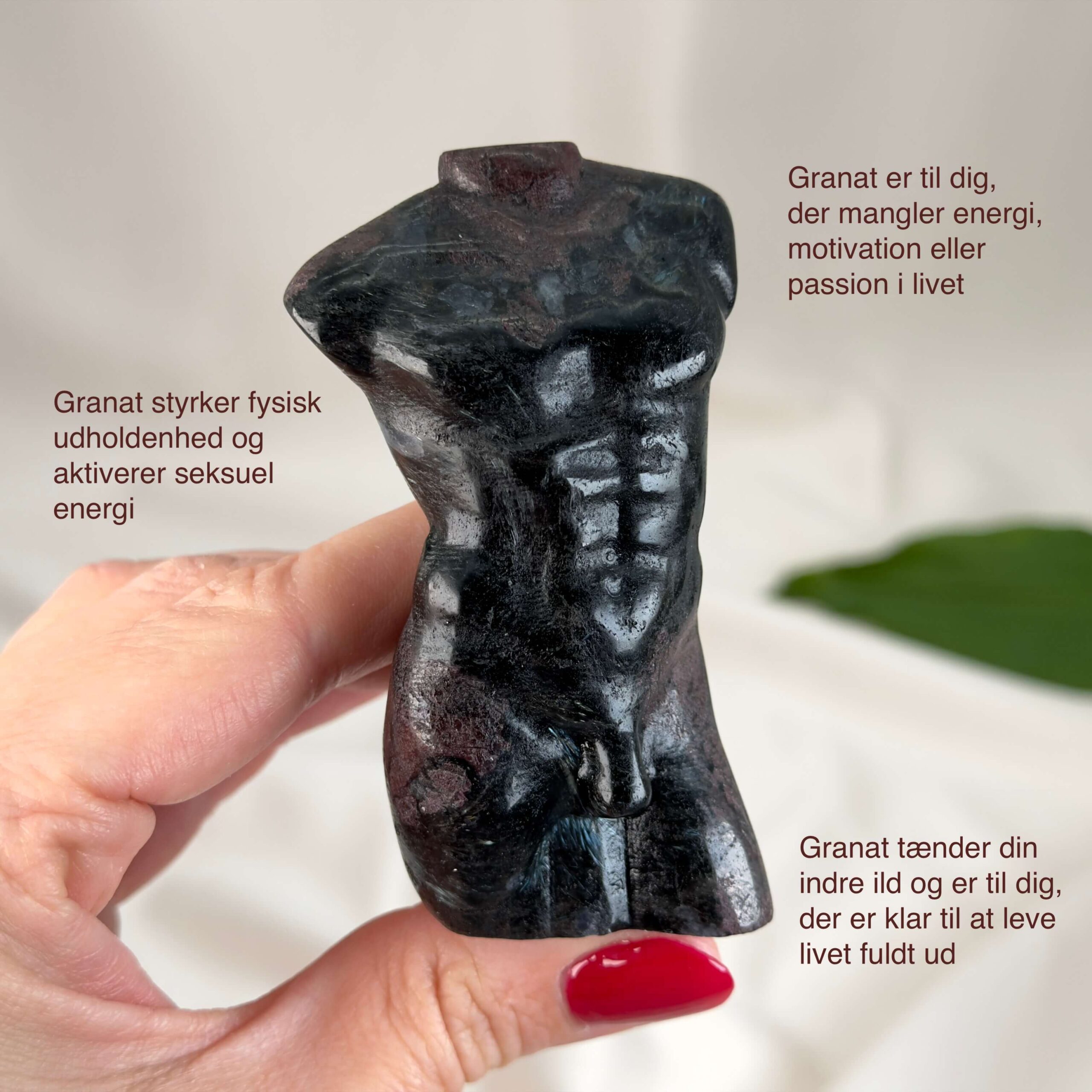 Denne Granat Mandekrop er i kategorien one-of-a-kind, hvilket vil sige, at det er krystallen på billedet du køber.