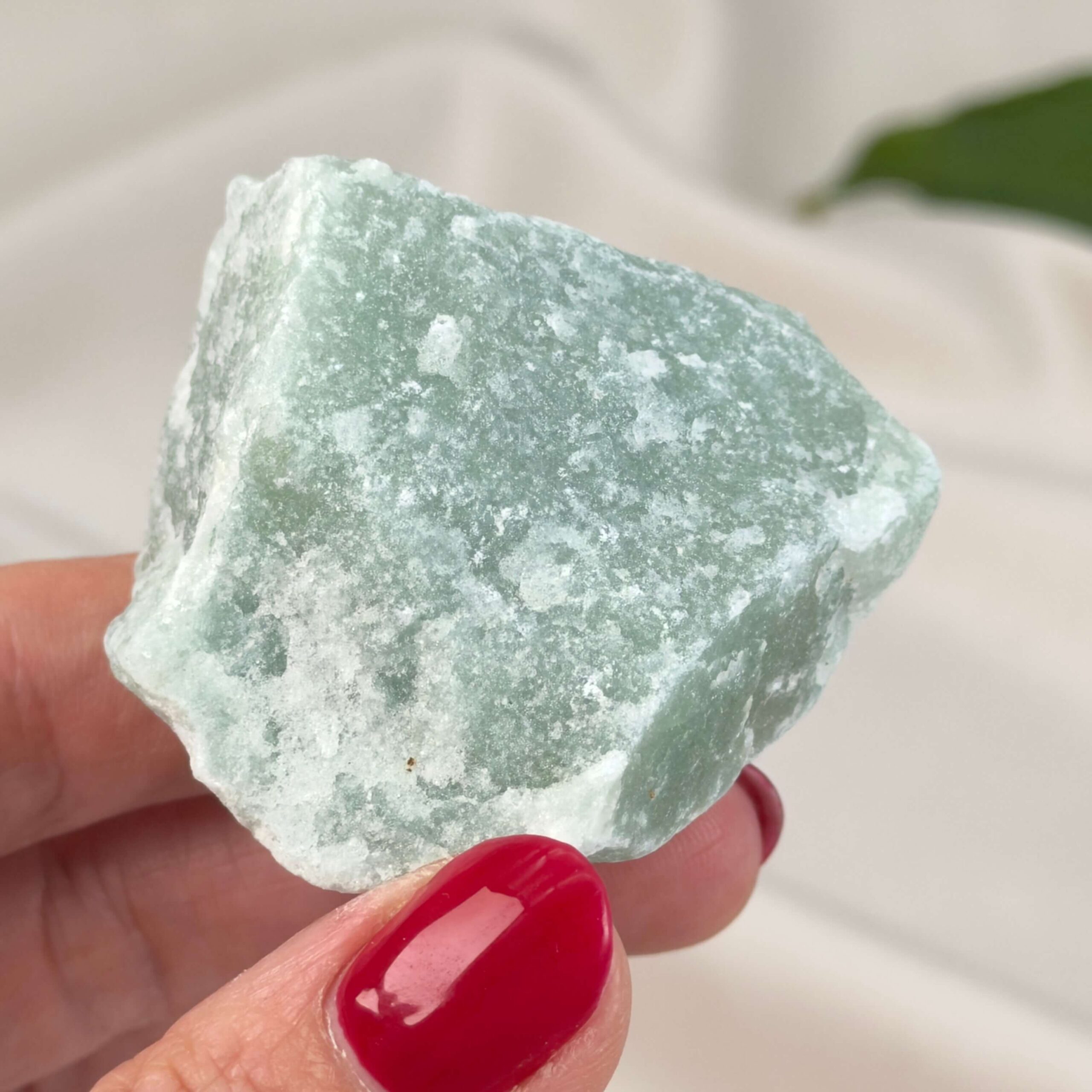 Manifestation: Grøn Aventurin Rå støtter tiltrækning af velstand, succes og positive forandringer.
