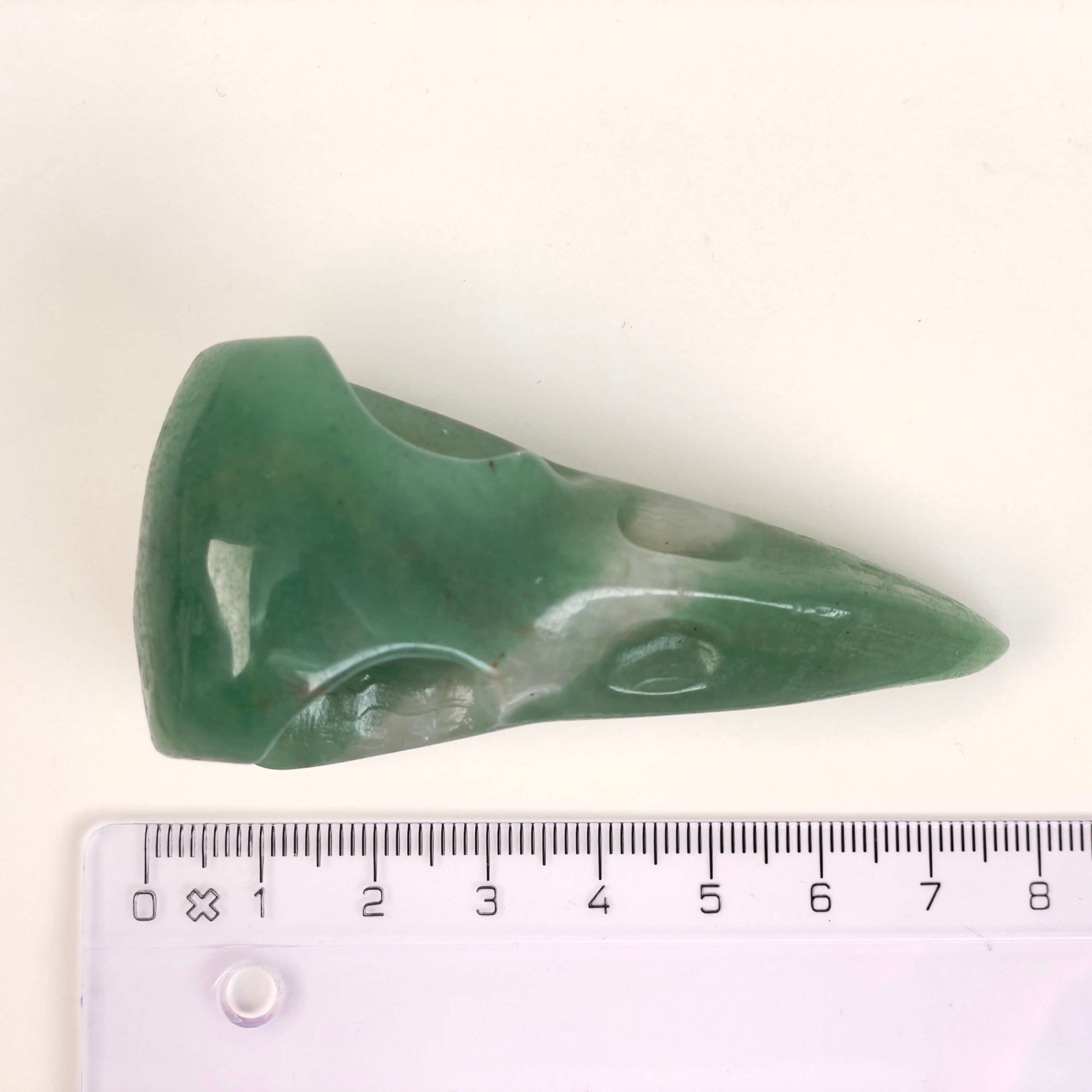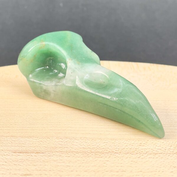 Grøn Aventurin Ravnenæb er en dekorativ krystalfigur med en tydelig og genkendelig silhuet. De grønne nuancer varierer fra lys til dybere toner, hvilket skaber liv i overfladen. Den skarpe form giver et moderne og stilrent udtryk, og Grøn Aventurin Ravnenæb passer perfekt ind i både minimalistiske og naturlige indretninger.