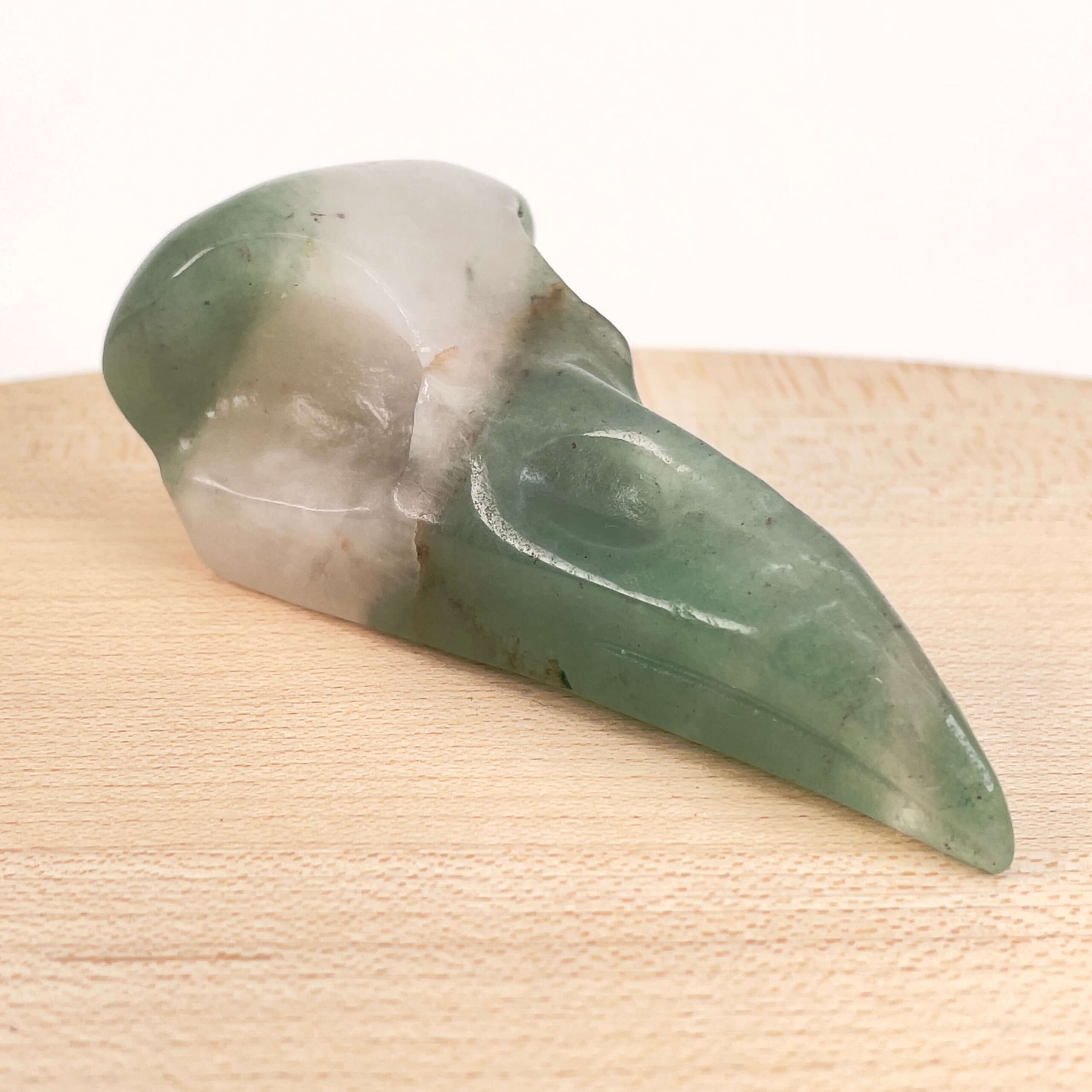 Grøn Aventurin Ravnenæb skiller sig ud med sin karakteristiske form og smukke grønne nuancer. Den polerede overflade giver et elegant finish, mens de naturlige variationer gør hver figur unik. Grøn Aventurin Ravnenæb er et oplagt valg for dig, der ønsker en krystal med et anderledes og iøjnefaldende udtryk.