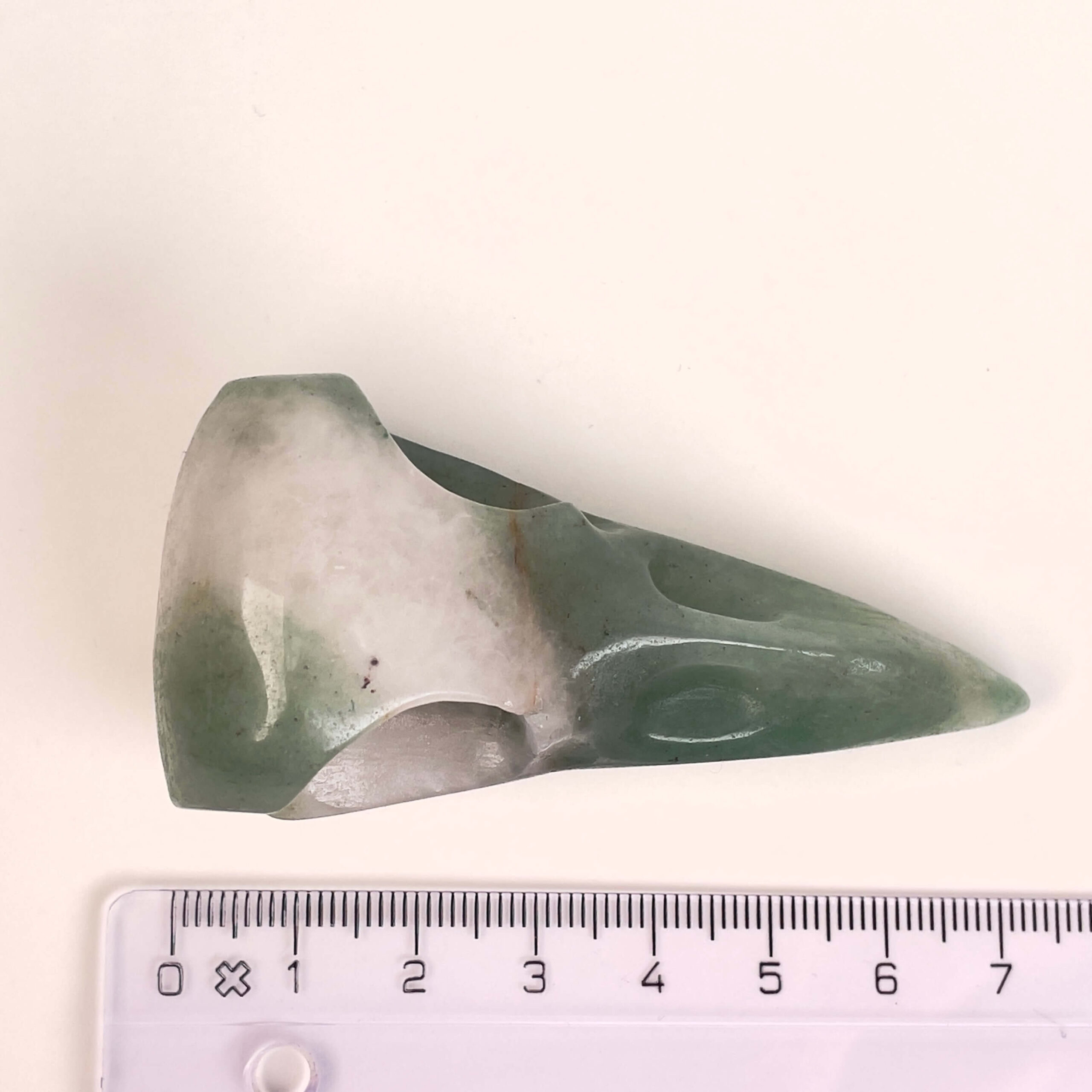 Dette Grøn Aventurin Ravnenæb er i kategorien one-of-a-kind, hvilket betyder, at det er krystallen på billedet du køber. Prisen er for den éne. Figuren måler 7,5 cm og vejer 56g.