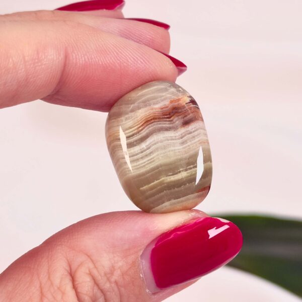 På trods af navnet, er Grøn Onyx lommesten ikke en ren onyx, men en form for bandet calcit og aragonit, som gennem millioner af år er aflejret i lag. Netop denne mineralske sammensætning giver stenen dens usædvanligt blide, nærende og fredfyldte udtryk. Grøn Onyx er kendt som en energistabiliserende krystal, der skaber ro i både tanker og følelser. Den hjælper dig med at holde fokus på det væsentlige og slippe det, der skaber indre uro.