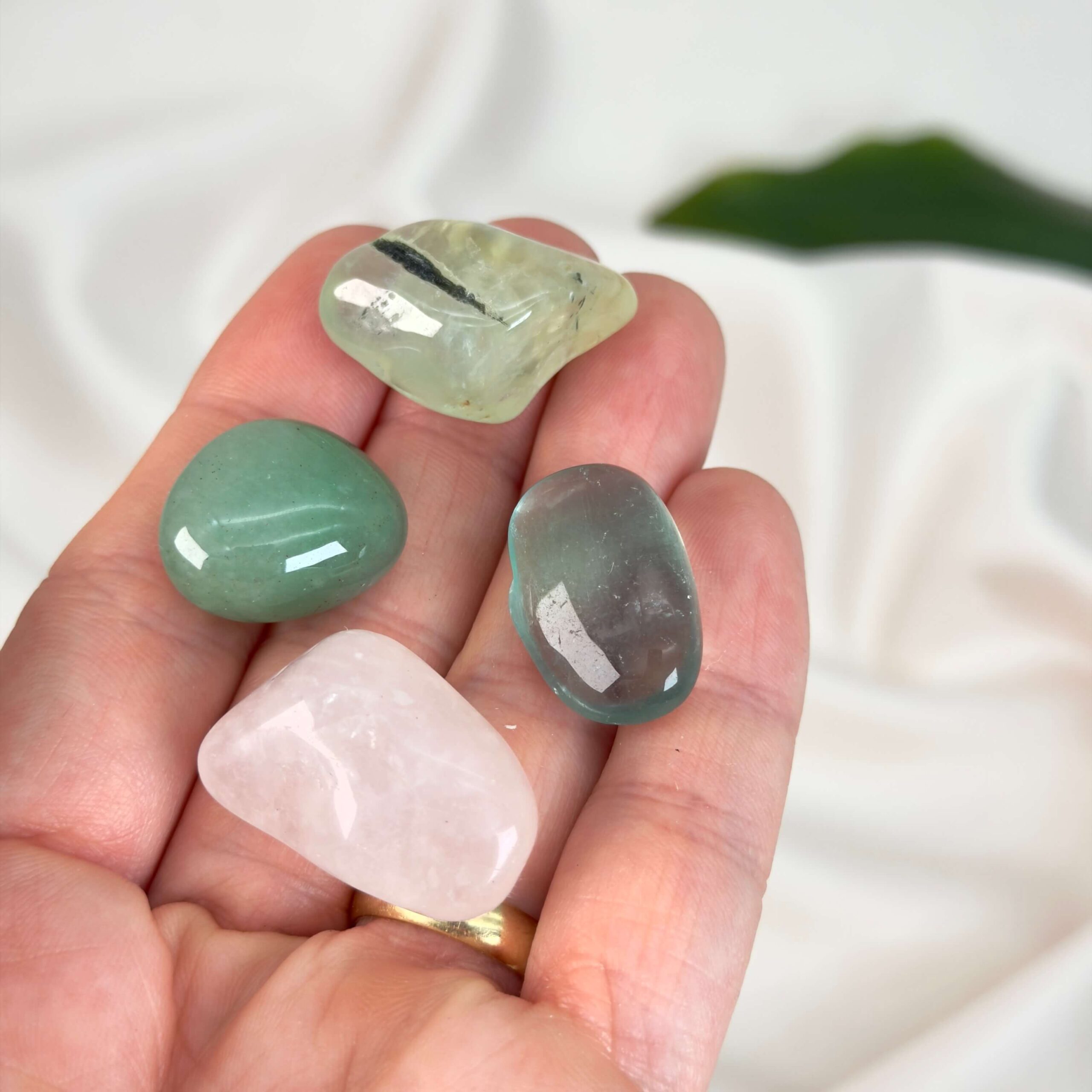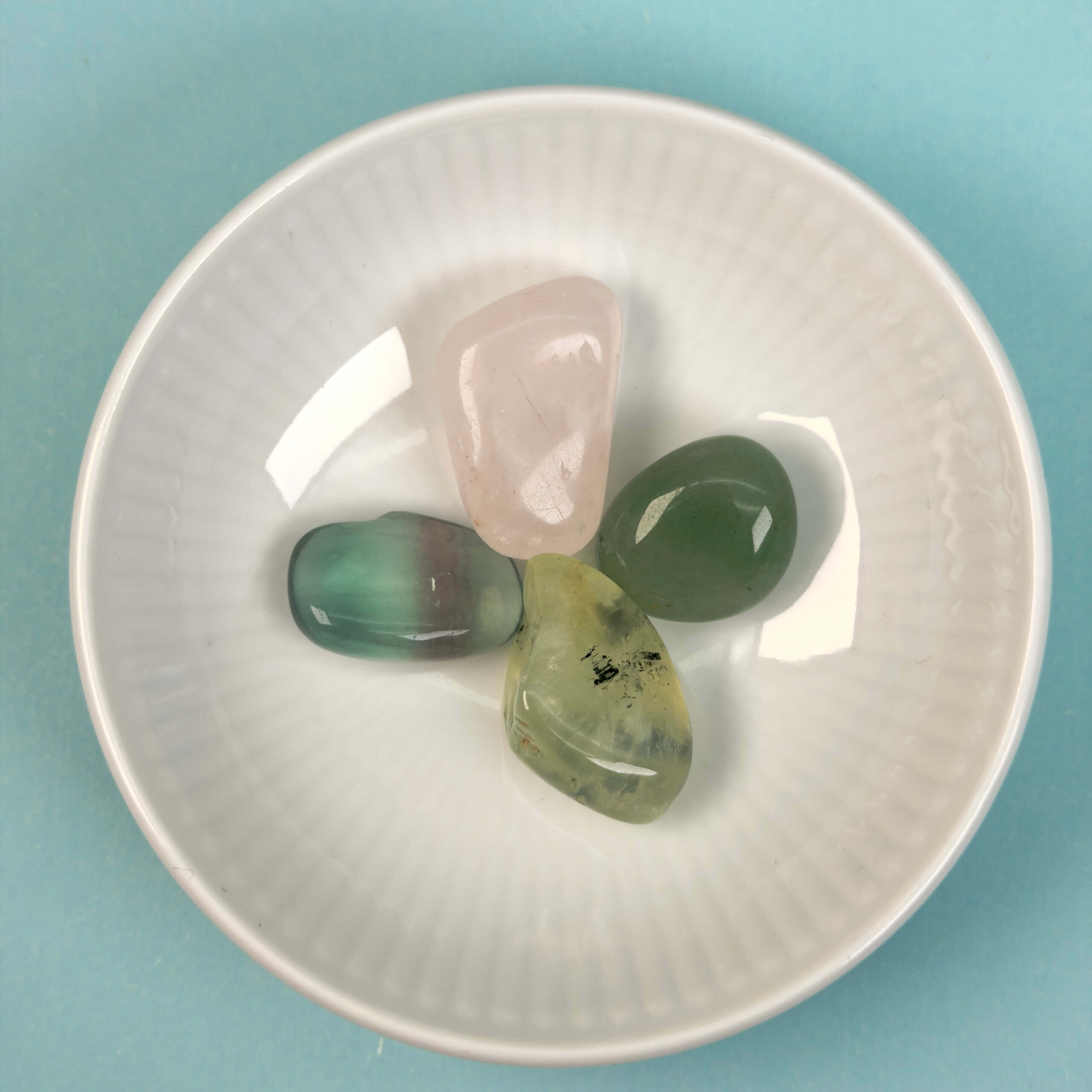 Healingssæt til Vægten er skabt til dig, der ønsker ro i tankerne, balance i følelserne og styrke i dine valg. Kombinationen af rosakvarts, grøn aventurin, fluorit og prehnit arbejder sammen om at skabe harmoni mellem hjerte og sind, så du ikke længere skal tvivle på dig selv.