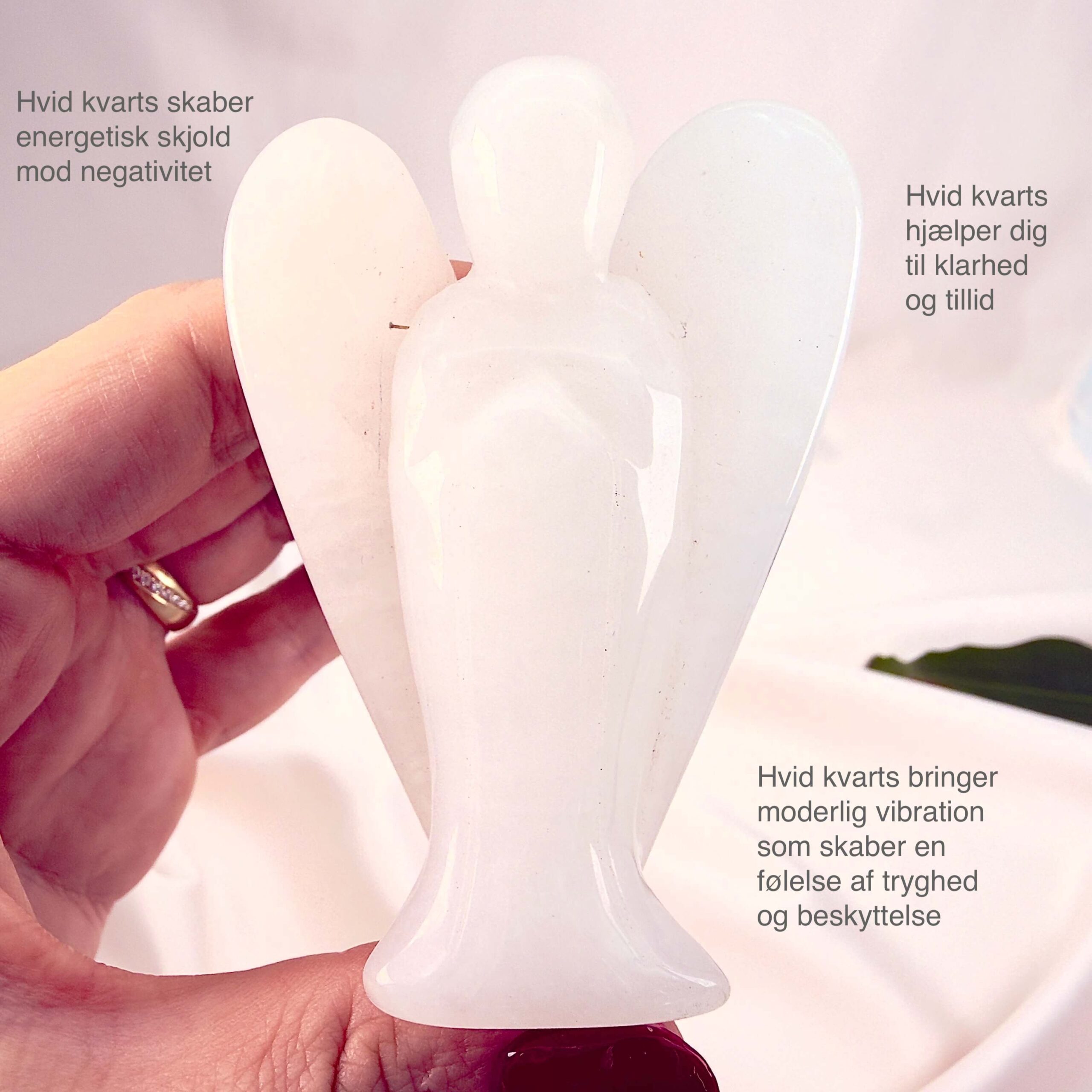 Klarhed: Hvid kvarts engel giver overblik, fokus og mental ro.