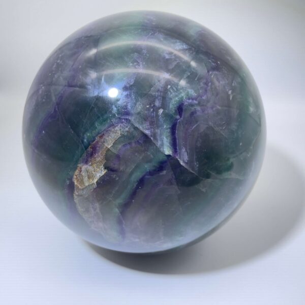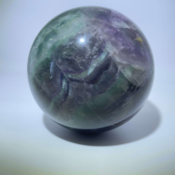 Denne Regnbue Fluorit Kugle er i kategorien One-Of-A-Kind, som betyder at det er Kuglen på billedet du køber. Prisen er for den éne.