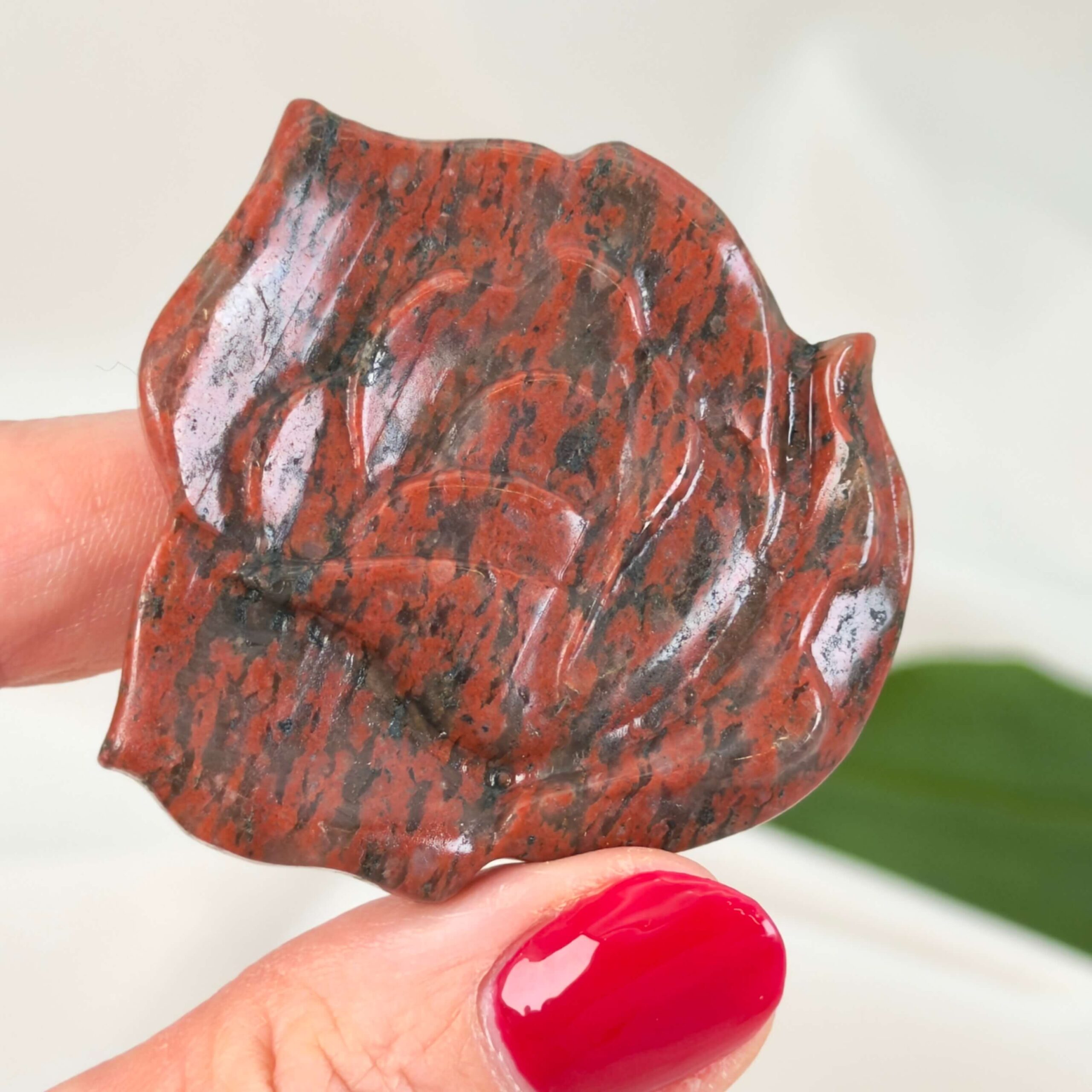 En krystal blomst i Jaspis Breccie kan styrke mod, beskyttelse og følelsesmæssig ro.