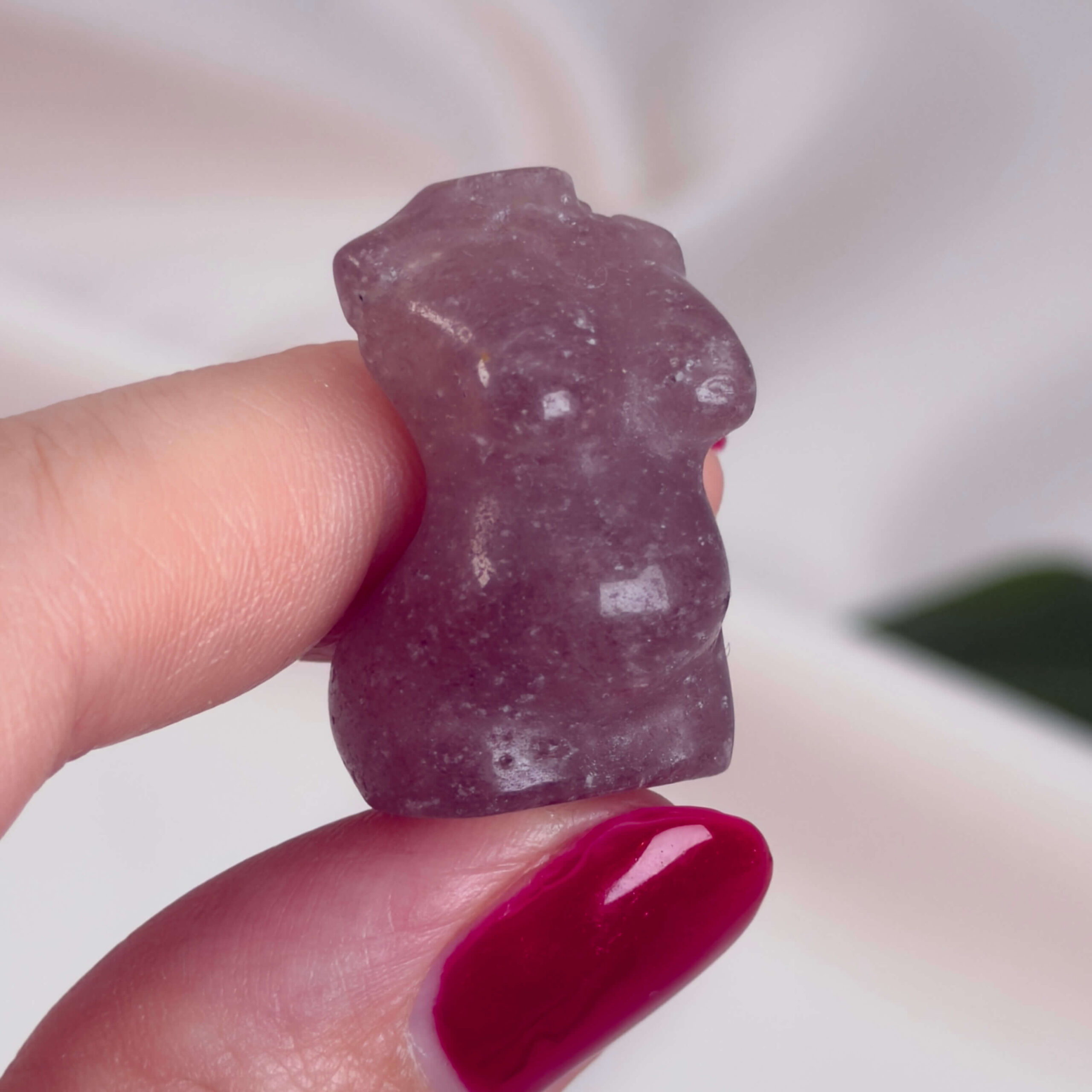 Når krystallen formes som en gravid kvindekrop, skabes en særlig symbolik. Figuren bliver et kraftfuldt redskab til meditation og intention. Den forener stenens energi med moderens essens.