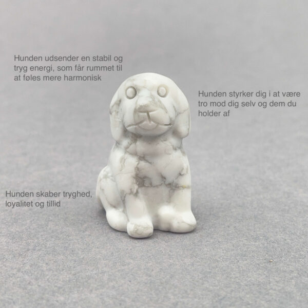 Hunden er også et billede på beskyttelse. Mange oplever, at en hund i krystal udsender en stabil og tryg energi, der får rummet til at føles mere harmonisk. Ligesom en rigtig hund skaber tryghed, gør figuren det i symbolsk form. Den holder et kærligt, men vågent øje med dig og dit hjem.