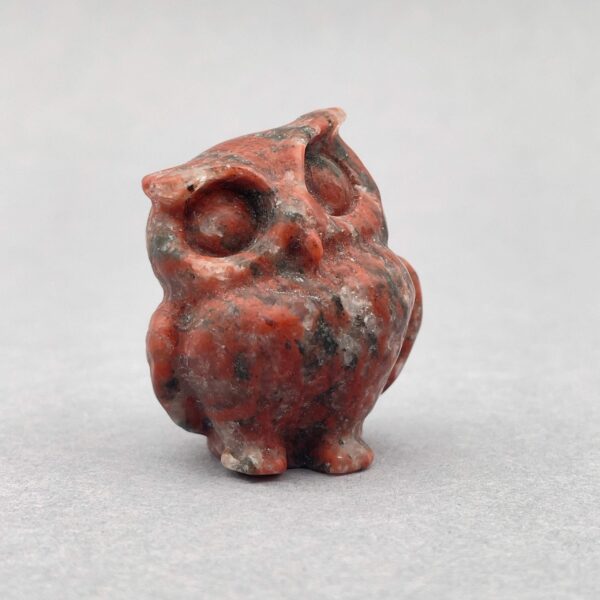 En ugle i Jaspis Breccie kan styrke mod, beskyttelse og følelsesmæssig ro.
