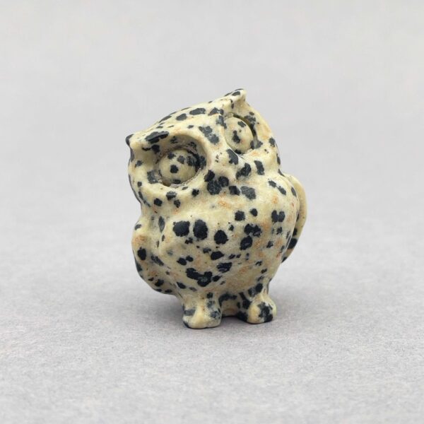 En ugle i Jaspis Dalmatiner kan give legende energi, glæde og trofasthed.