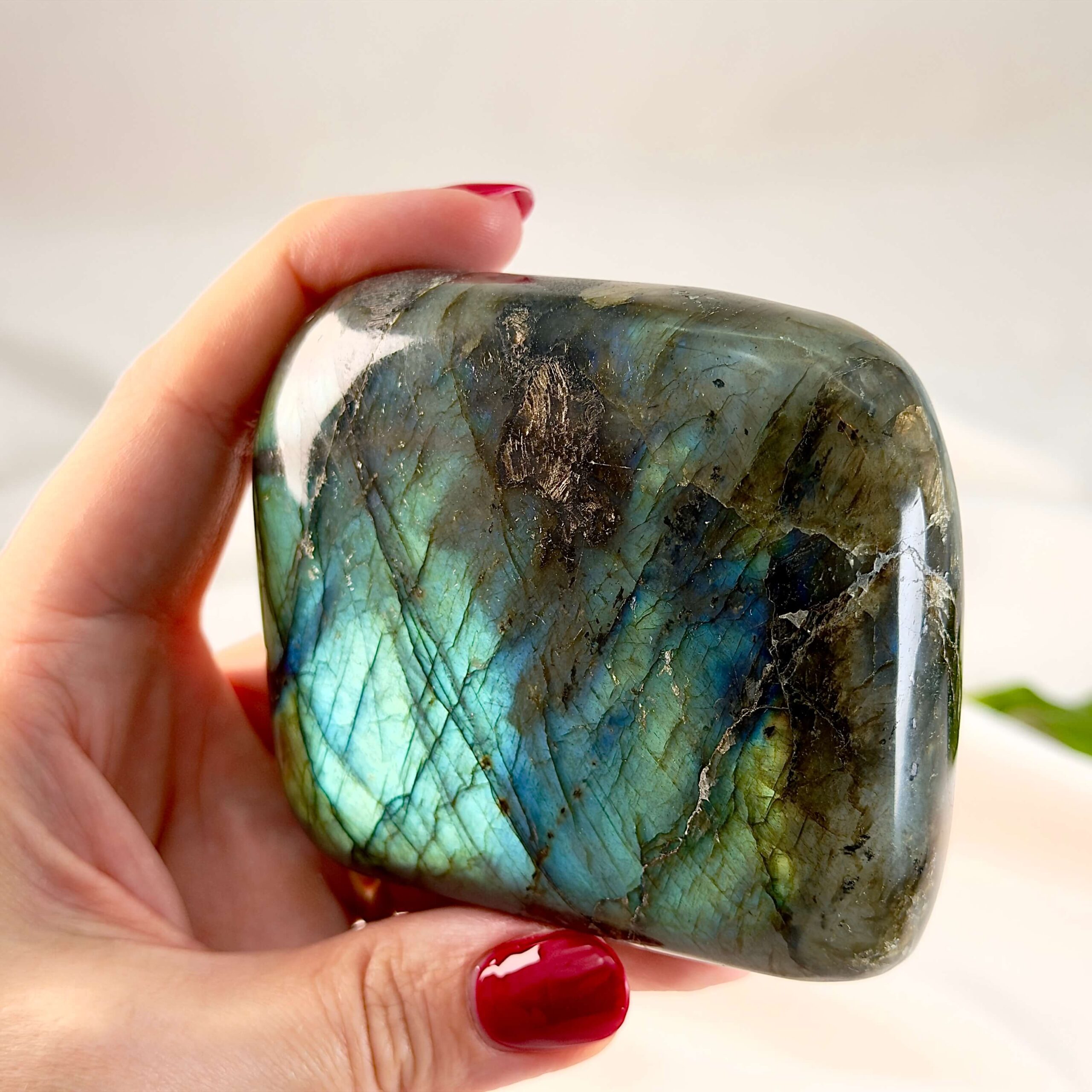 Styrke og selvtillid: En Labradorit freeform hjælper med at stå fast i din egen energi og finde mod til at udvikle dig