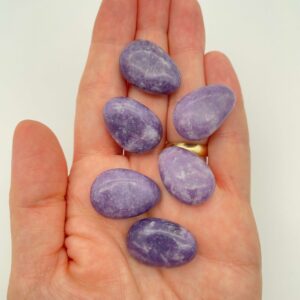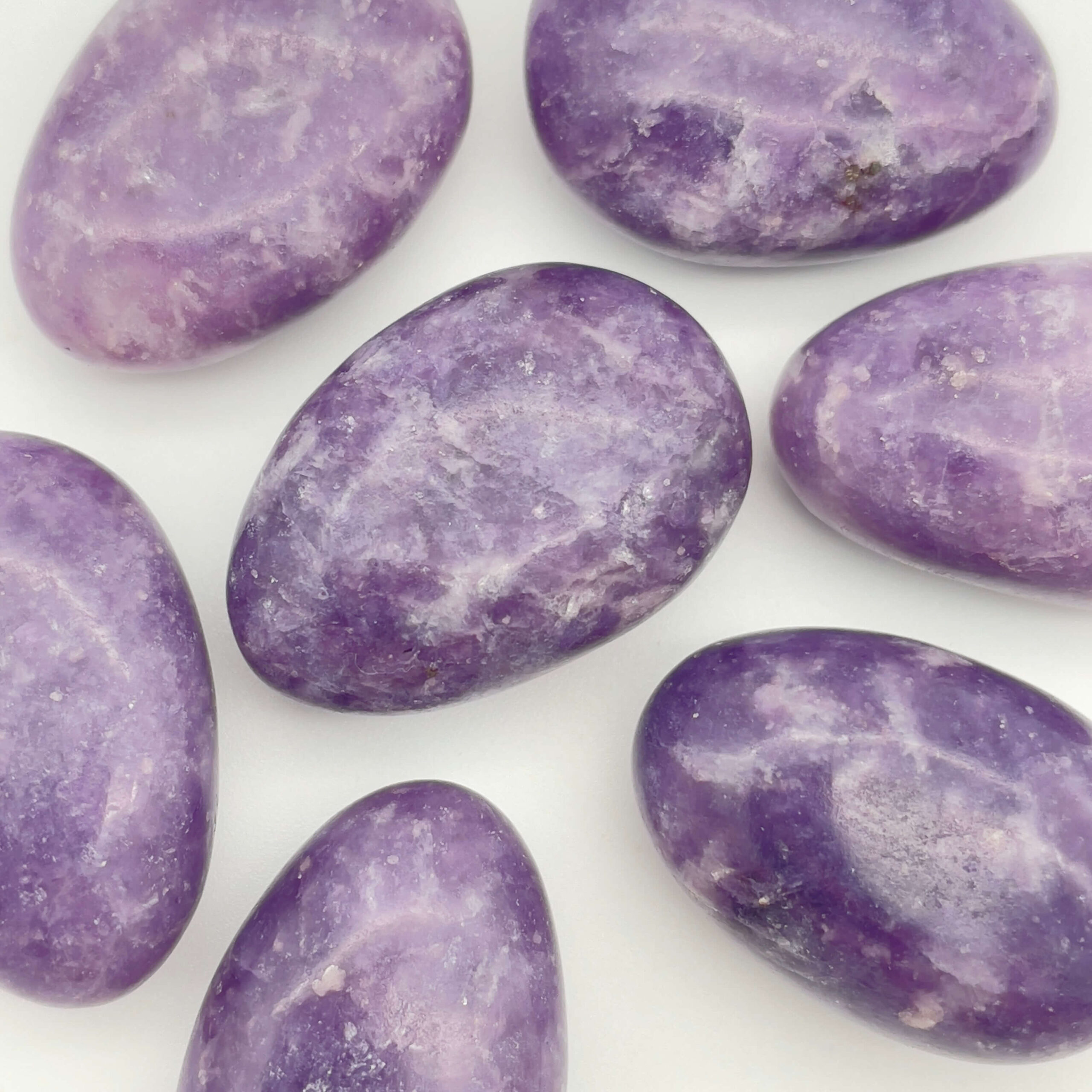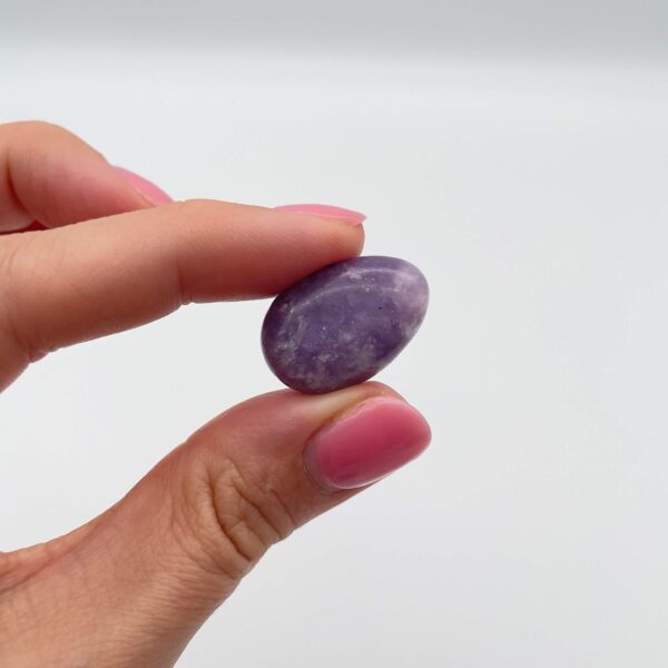 Disse Lepidolit er håndpoleret og derfor klare, glatte og meget smukke i deres udformning. De er afrundet i hjørnerne og perfekte til at have med som lommesten. Pga. håndpoleringen er den lækker at røre ved og ligger godt i hånden, hvilket giver en beroligende, “stressball”-agtig effekt. Den fungerer super godt både til mindfuld berøring og som støtte i meditation.