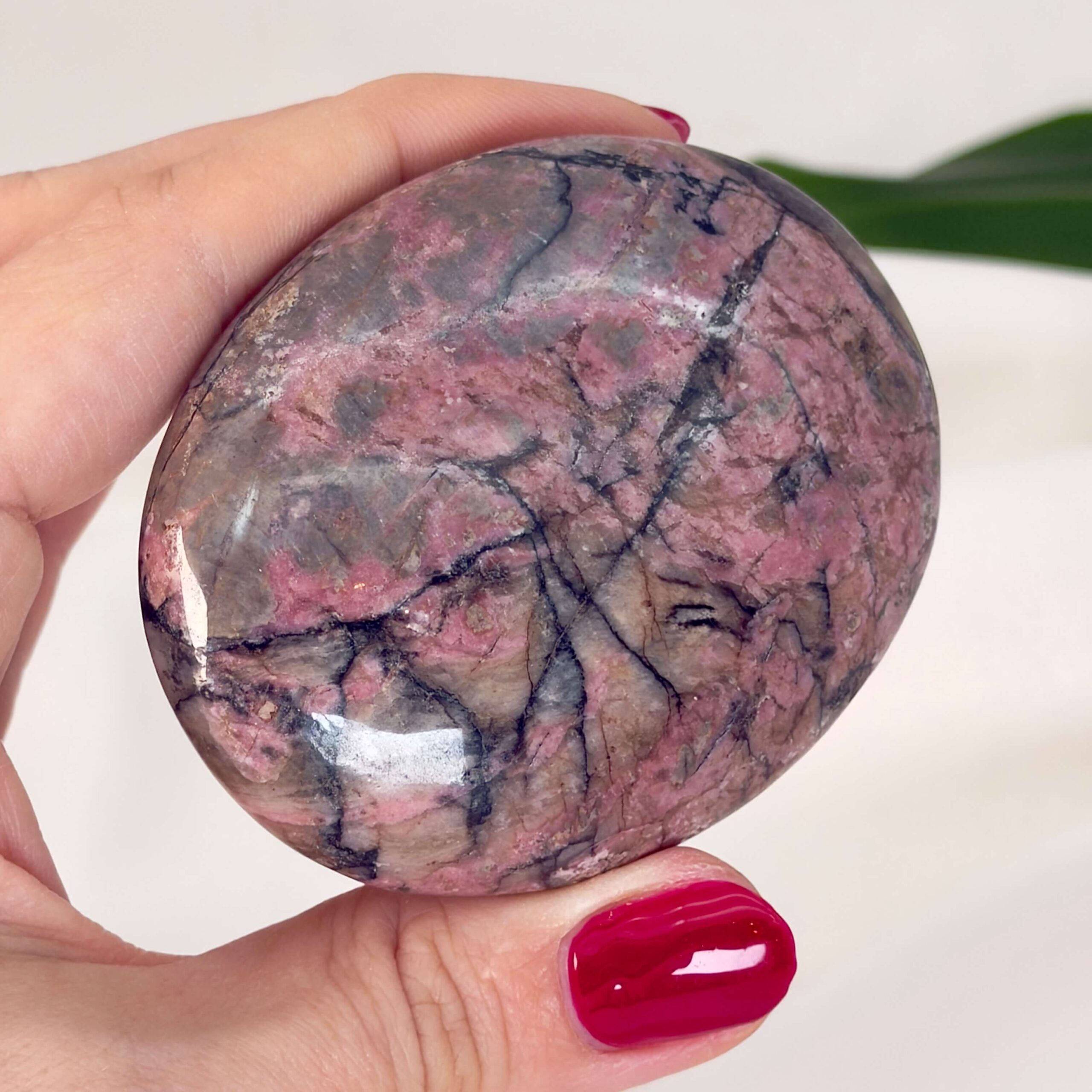En Rhodonit håndsten støtter følelsesmæssig modning og evnen til at give slip på det, der ikke længere tjener dig.