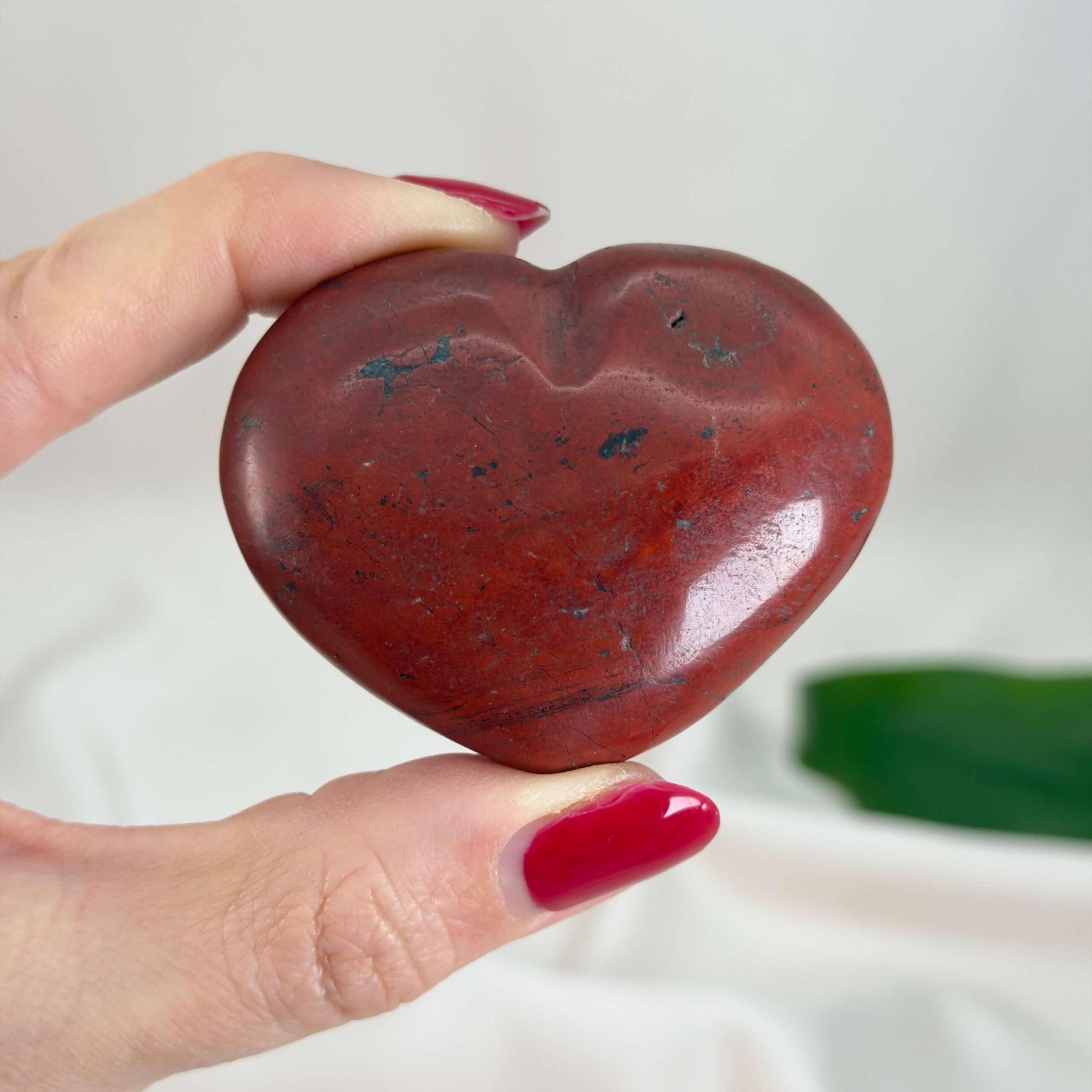 Handlekraft: Rød Jaspis Hjerte fremmer mod, beslutsomhed og evnen til at handle med ro og klarhed.