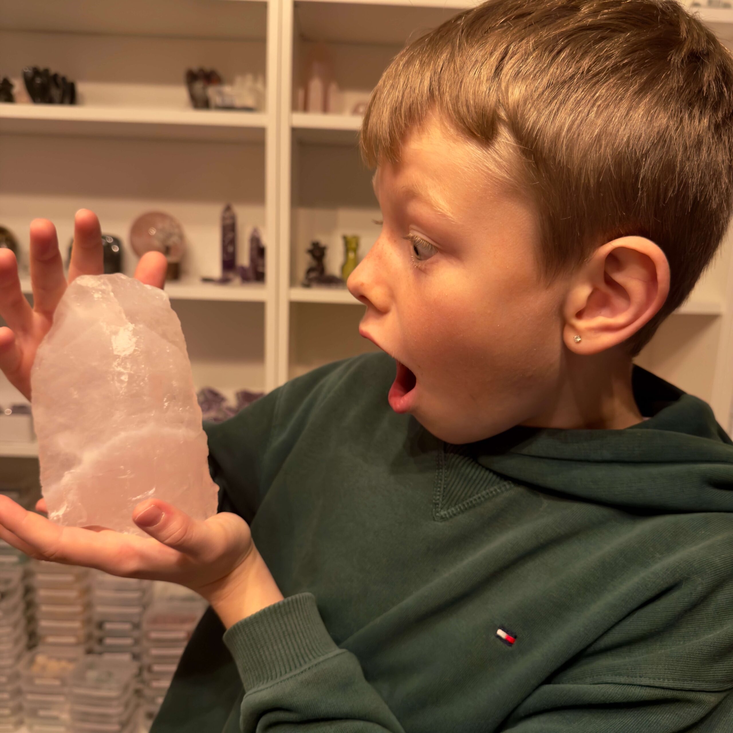 Denne rå Rosakvarts er specielt udvalgt af Markus og er derfor i kategorien One-Of-A-Kind, som betyder at det er krystallen på billedet du køber. Prisen er for den éne. Krystallen måler 14 cm og vejer 900g.På lager