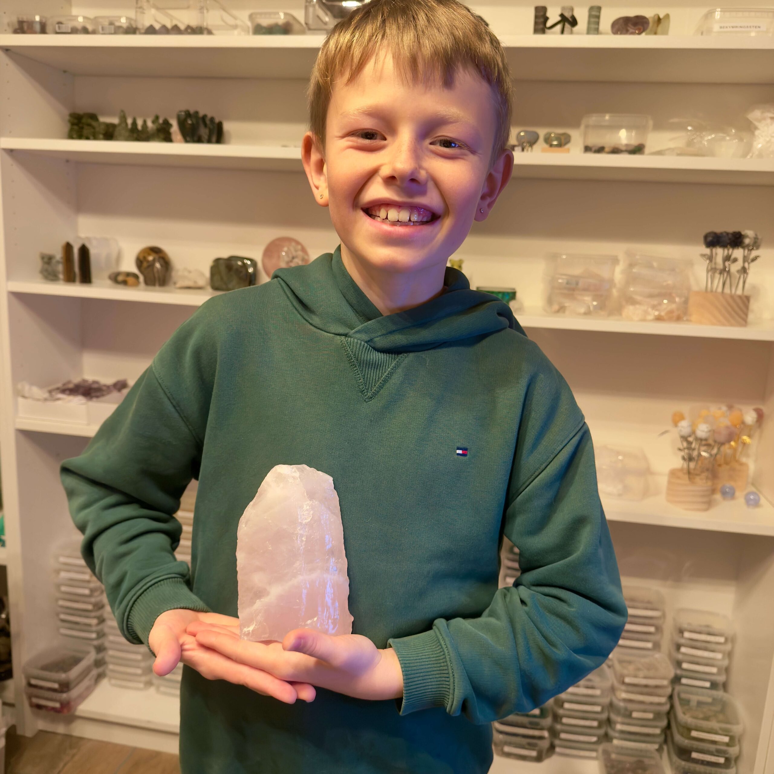 Denne rå Rosakvarts er specielt udvalgt af Markus og er derfor i kategorien One-Of-A-Kind, som betyder at det er krystallen på billedet du køber. Prisen er for den éne. Krystallen måler 14 cm og vejer 900g.