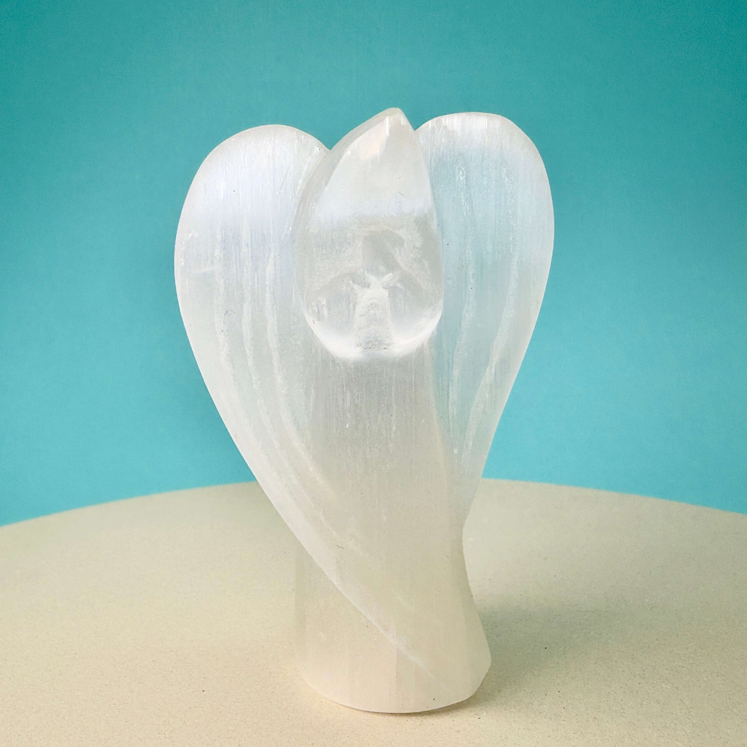 Selenit krystal engel sælges uspecificeret. Prisen er for én. Vælg mellem flere størrelser.Selenit engel er en af de mest lyse og rene krystaller i verden. Den bærer en energi, som næsten føles himmelsk rolig, rensende og klar. Selenit forbindes ofte med månens energi, og navnet stammer fra den græske månegudinde Selene. Den udstråler fred og bringer lys til både sind og rum.