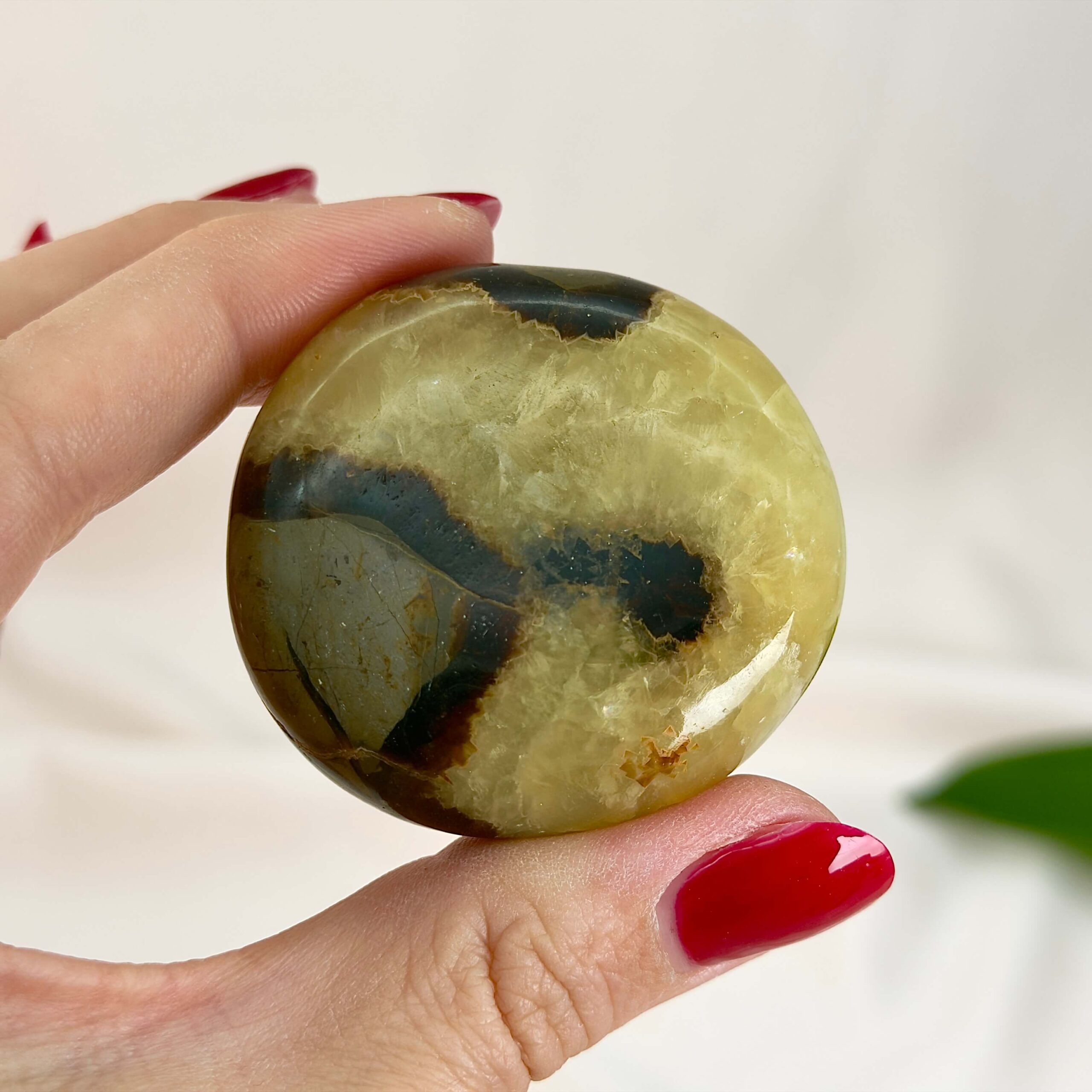 Tryghed: Septarie håndsten hjælper til at slippe frygt, angst, stress, tankemylder, bekymringer og indre uro og giver en følelse af ro