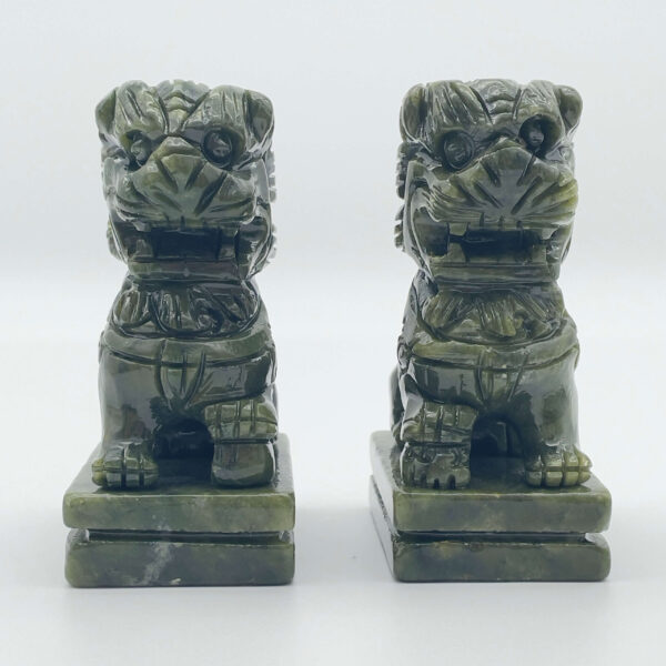 Dette Serpentin Guardian Lions par er i kategorien One-Of-A-Kind, som betyder at det er parret på billedet du køber. Prisen er for det éne par (2 stk.).
