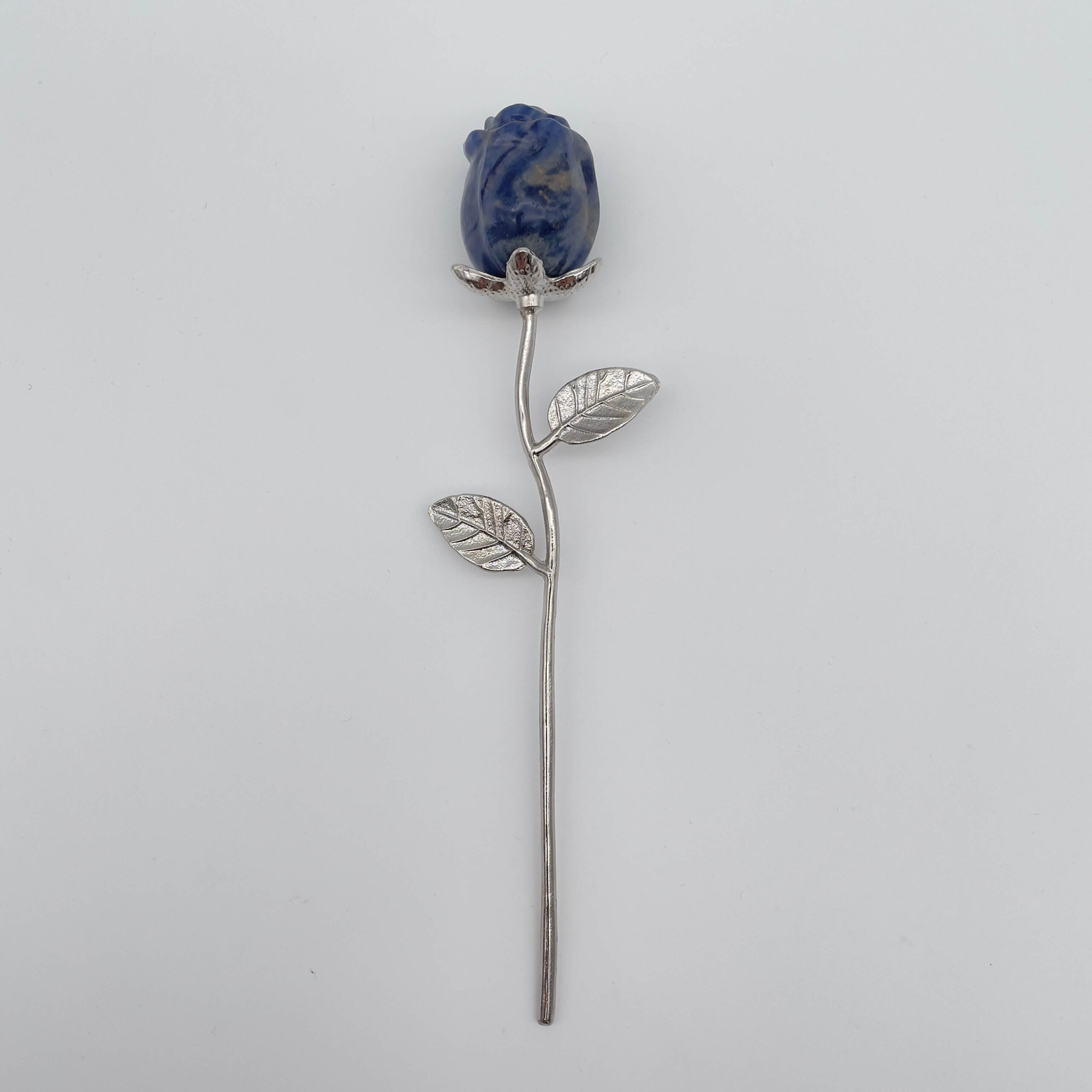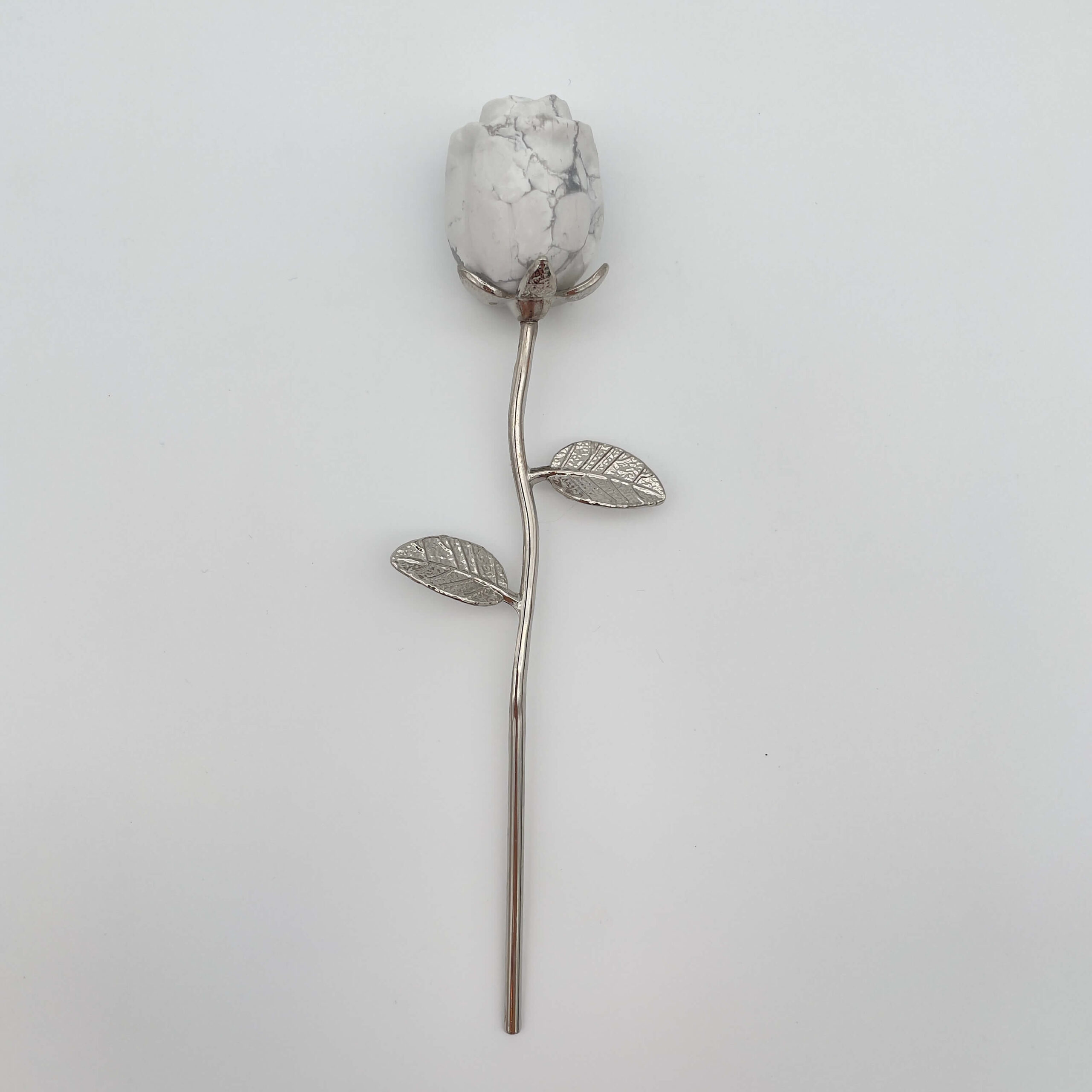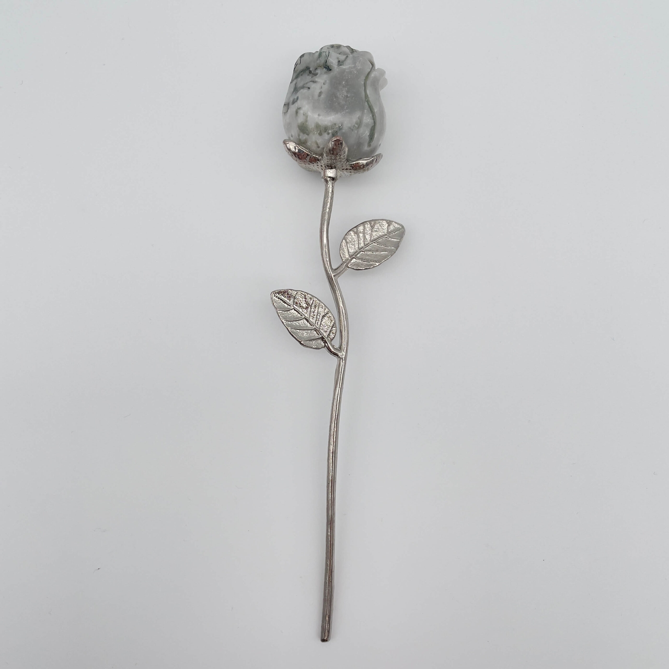 Når stilken og bladene er udført i sølvfarve, hæves rosen til et endnu højere tidsløst symbol. Sølvfarven repræsenterer månen, intuition, det feminine og det mystiske.
