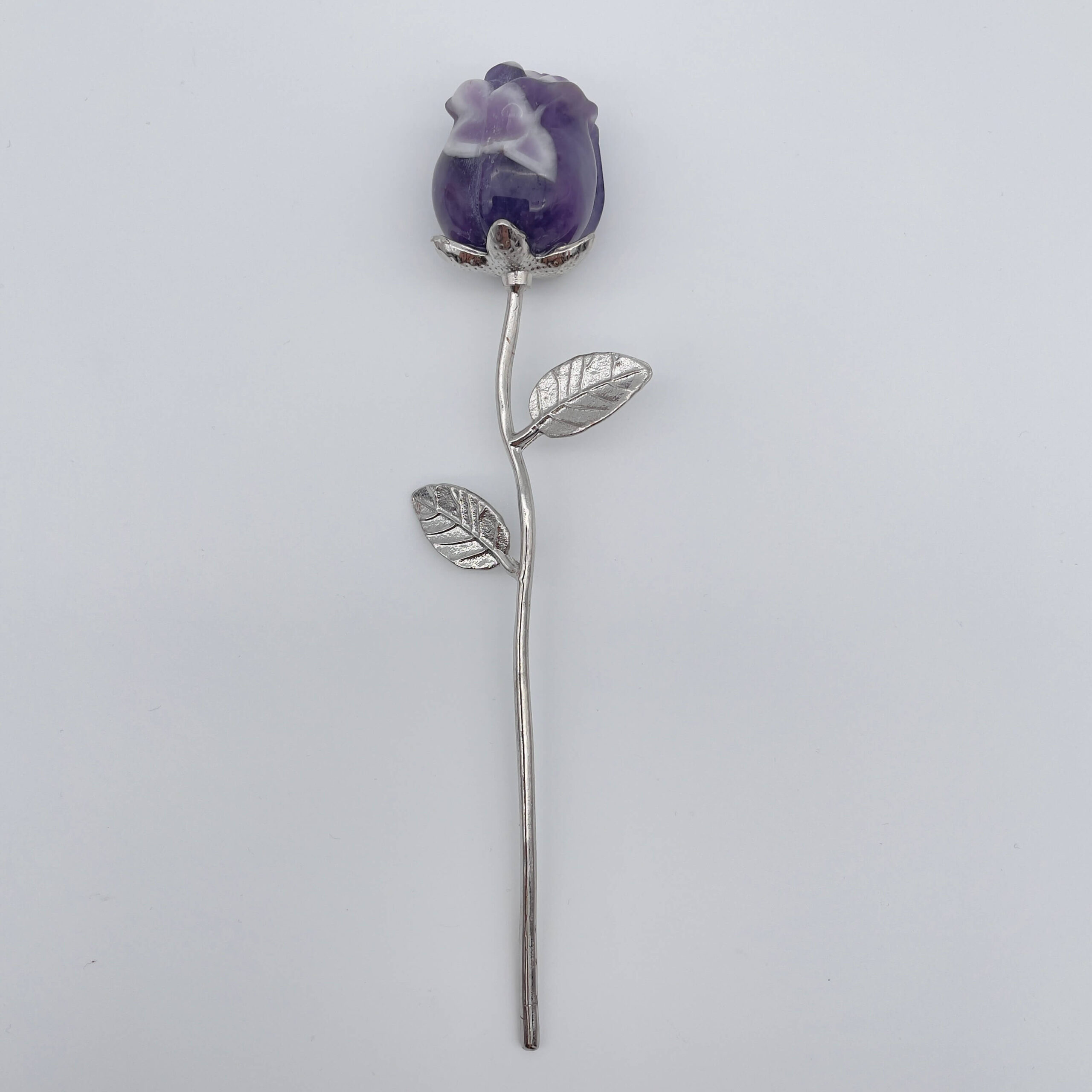 Rosens betydning: En ametyst-rose står for sjælens kærlighed – kærlighed, der er dyb, ren og beskyttende. Den hjælper med at heale gamle sår og åbne for højere bevidsthed i relationer.