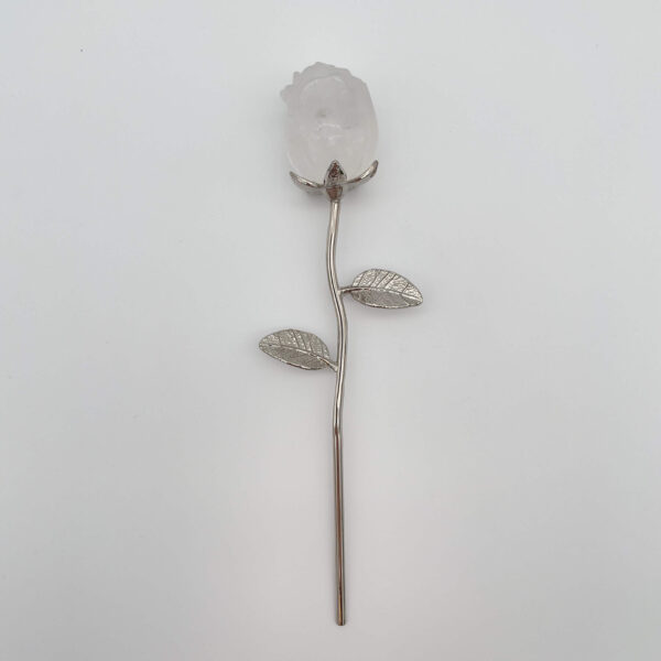 Rosens betydning: En bjergkrystal-rose repræsenterer renhed, sandhed og den klare, universelle kærlighed, som ligger ud over det fysiske. Den fungerer også som en “forstærker” af enhver intention, du lægger i den.
